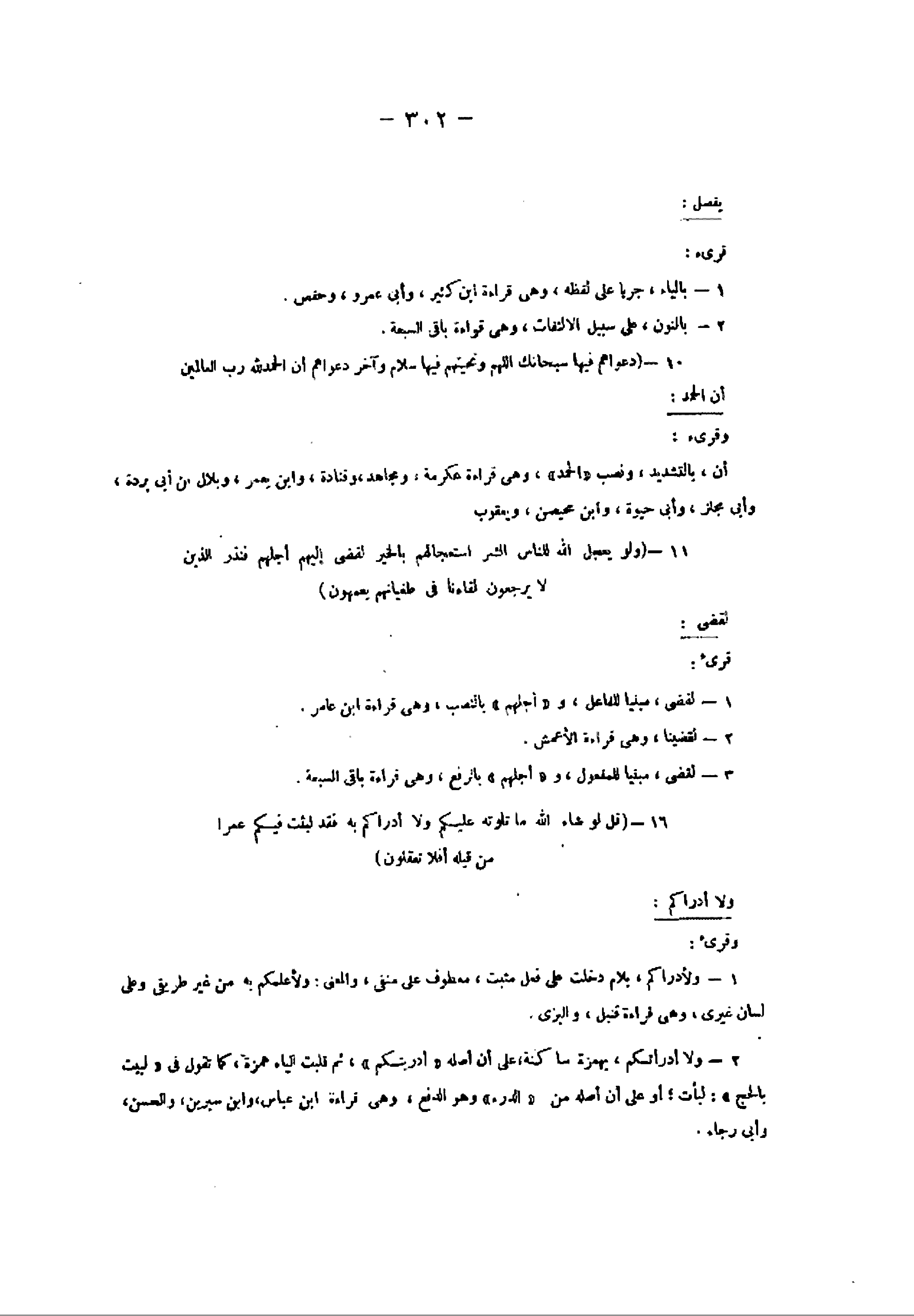 1- لقضى، مبنيا للفاعل، و «أجلهم» بالنصب، وهى قراءة ابن عامر.