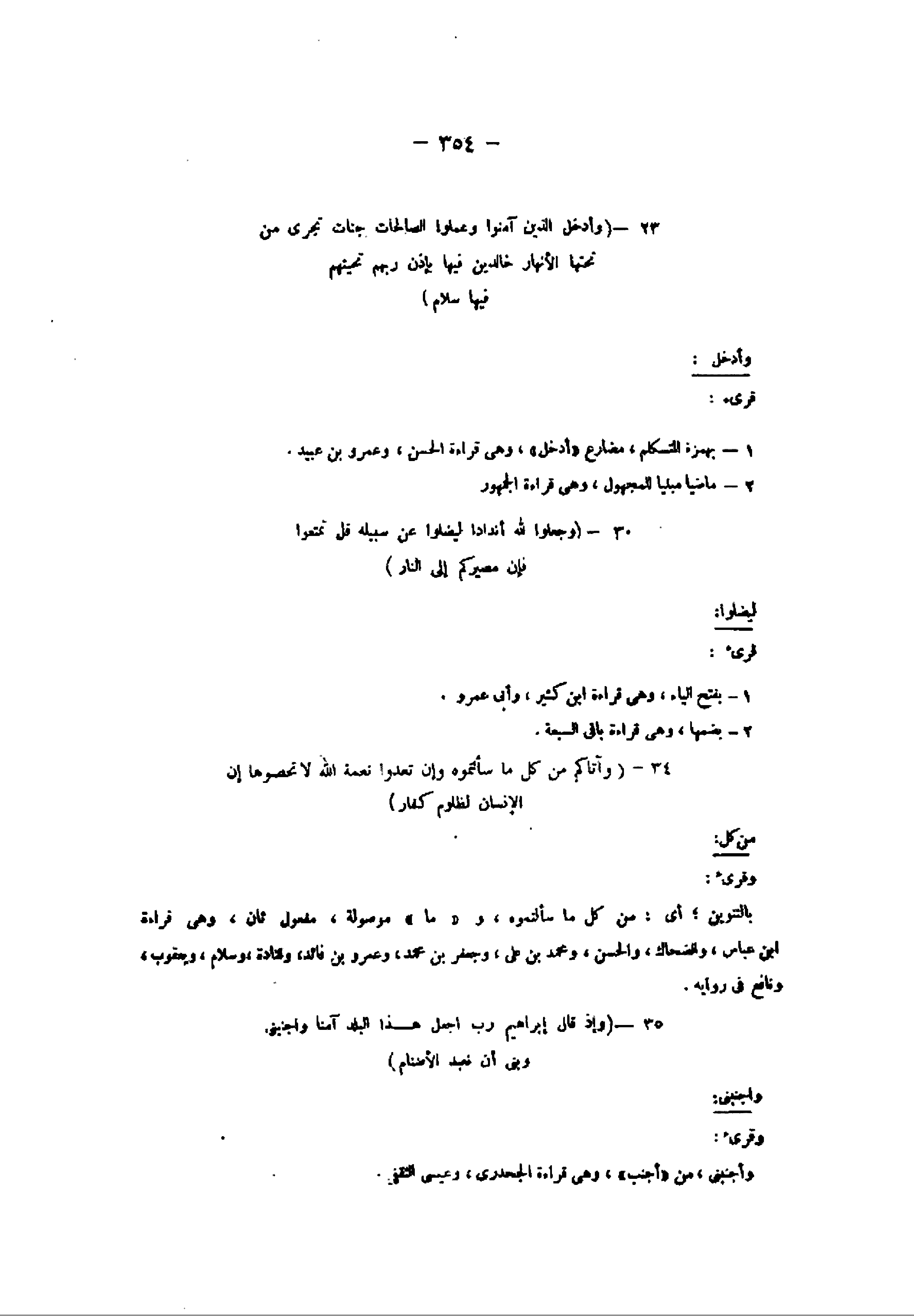 23- (وَأُدْخِلَ الَّذِينَ آمَنُوا وَعَمِلُوا الصَّالِحاتِ جَنَّاتٍ تَجْرِي مِنْ تَحْتِهَا الْأَنْهارُ خالِدِينَ فِيها بِإِذْنِ رَبِّهِمْ تَحِيَّتُهُمْ فِيها سَلامٌ) وأدخل: