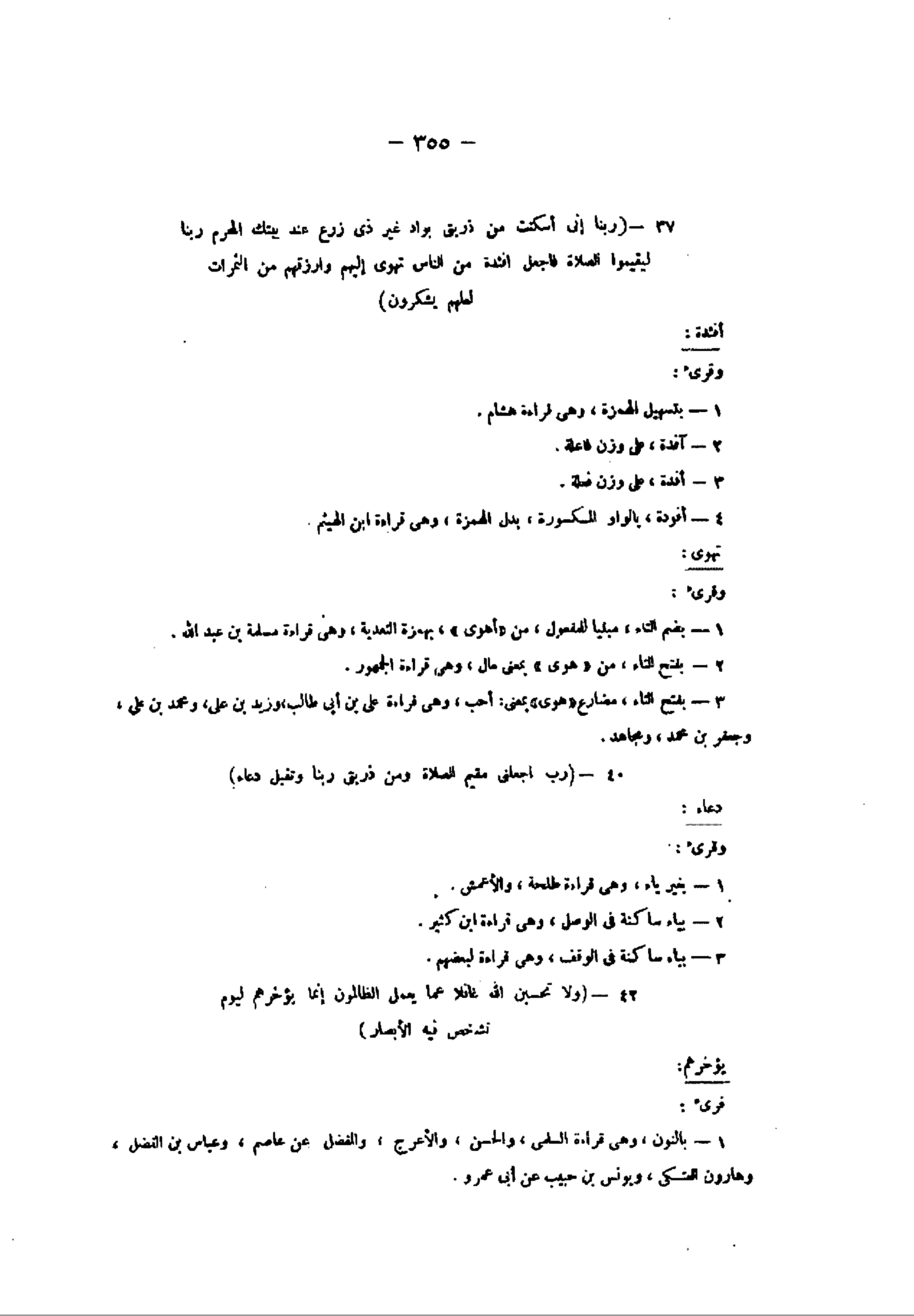 37- (رَبَّنا إِنِّي أَسْكَنْتُ مِنْ ذُرِّيَّتِي بِوادٍ غَيْرِ ذِي زَرْعٍ عِنْدَ بَيْتِكَ الْمُحَرَّمِ رَبَّنا لِيُقِيمُوا الصَّلاةَ فَاجْعَلْ أَفْئِدَةً مِنَ النَّاسِ تَهْوِي إِلَيْهِمْ وَارْزُقْهُمْ مِنَ الثَّمَراتِ لَعَلَّهُمْ يَشْكُرُونَ) أفئدة: