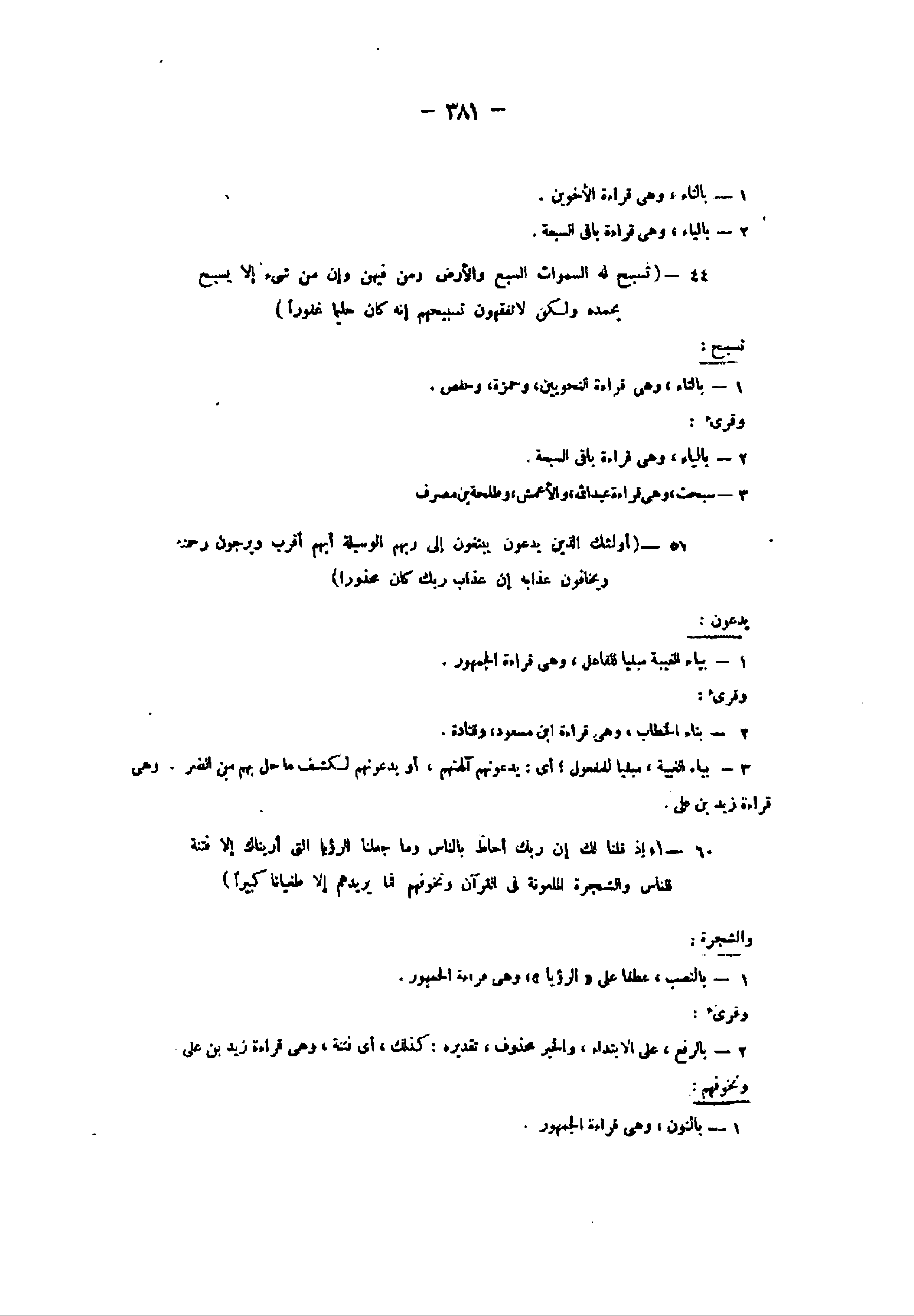 3- سبحت، وهى قراءة عبد الله، والأعمش، وطلحة بن مصرف.
