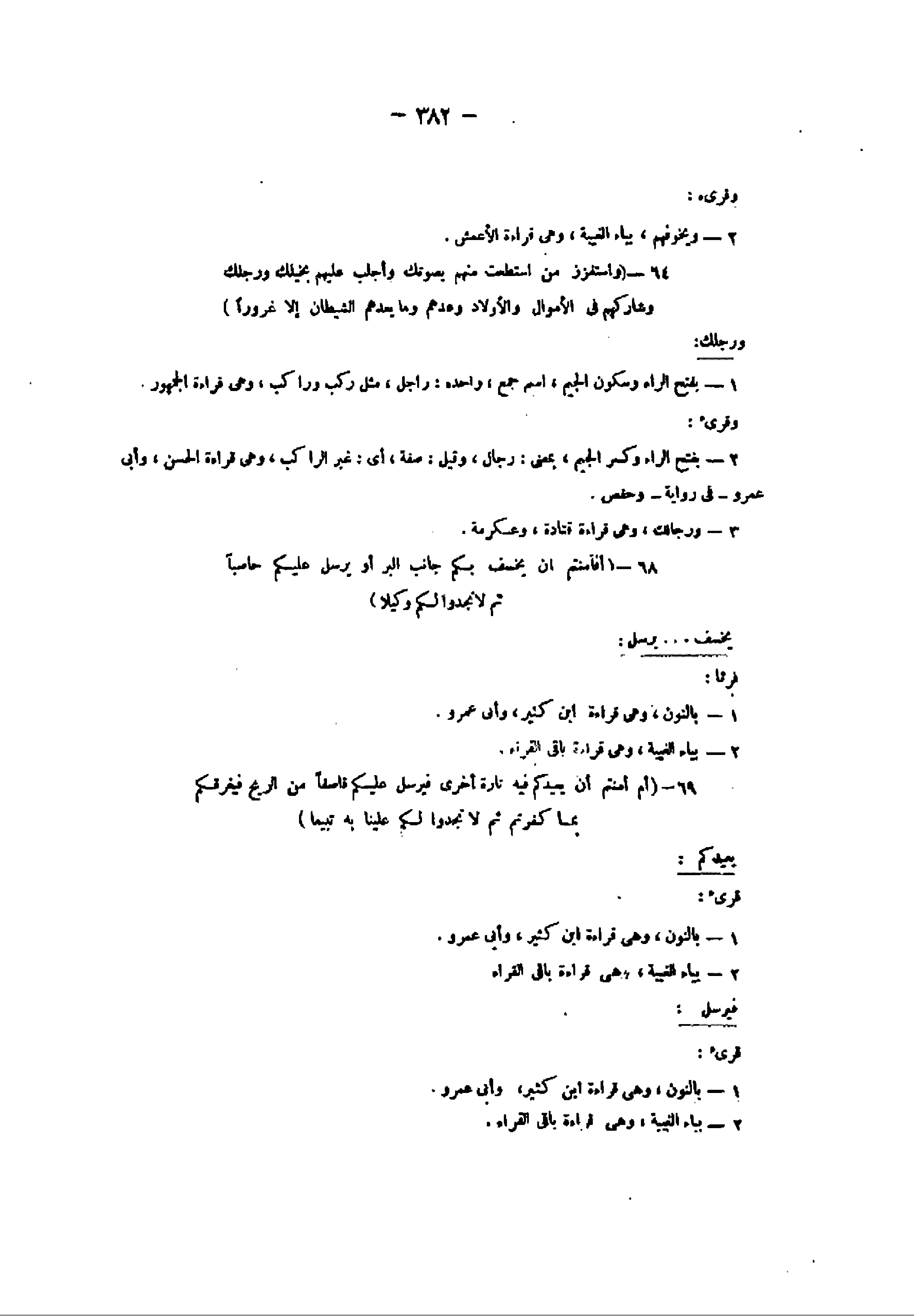 2- بفتح الراء وكسر الجيم، بمعنى: رجال، وقيل: صفة، أي: غير الراكب، وهى قراءة الحسن، وأبى عمرو- فى رواية- وحفص.