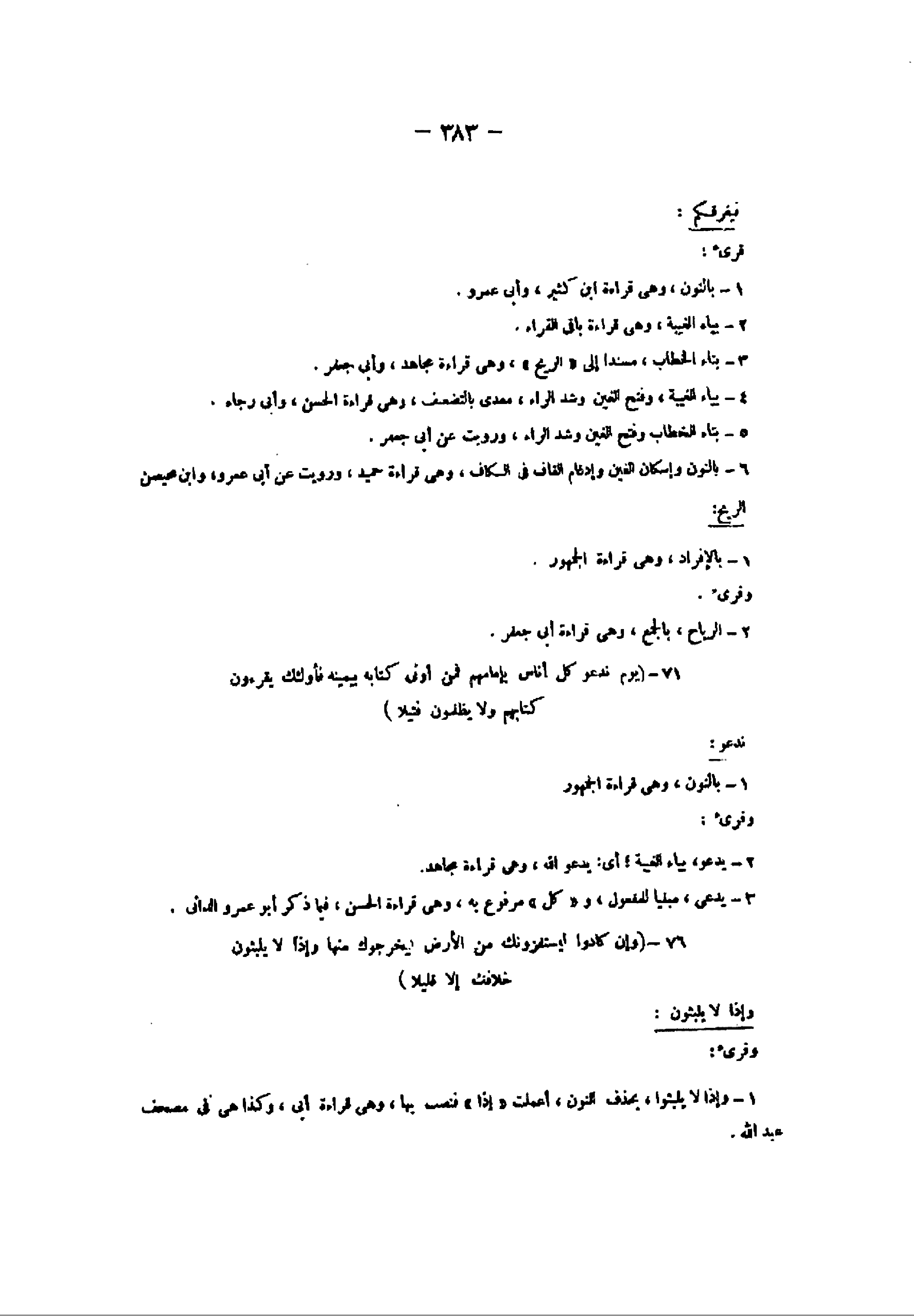 3- يدعى، مبنيا للمفعول، و «كل» مرفوع به، وهى قراءة الحسن، فيما ذكر أبو عمرو الداني.