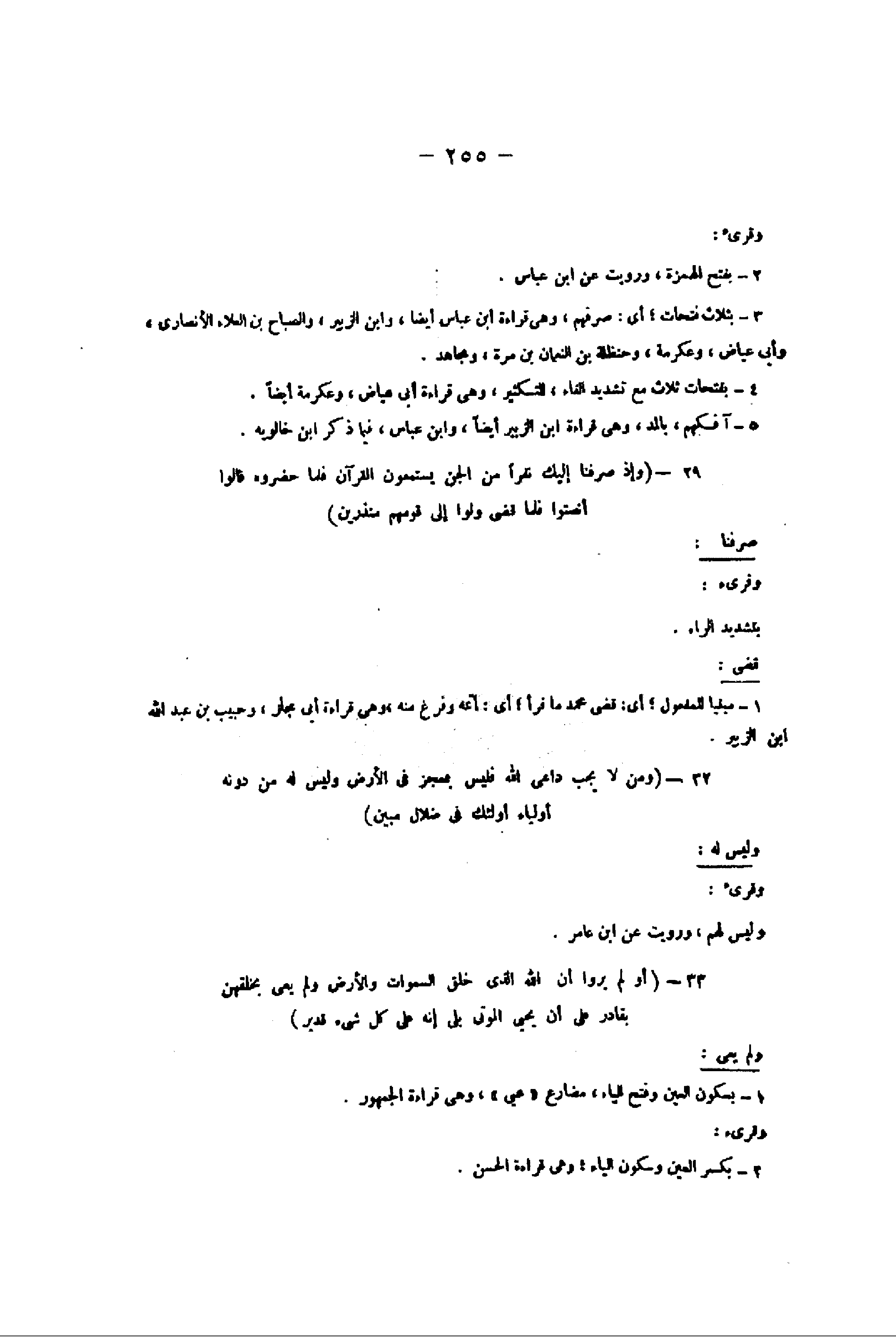3- بثلاث فتحات، أي: صرفهم، وهى قراءة ابن عباس أيضا، وابن الزبير، والصباح بن العلاء الأنصاري، وأبى عياض، وعكرمة، وحنظلة بن النعمان بن مرة، ومجاهد.