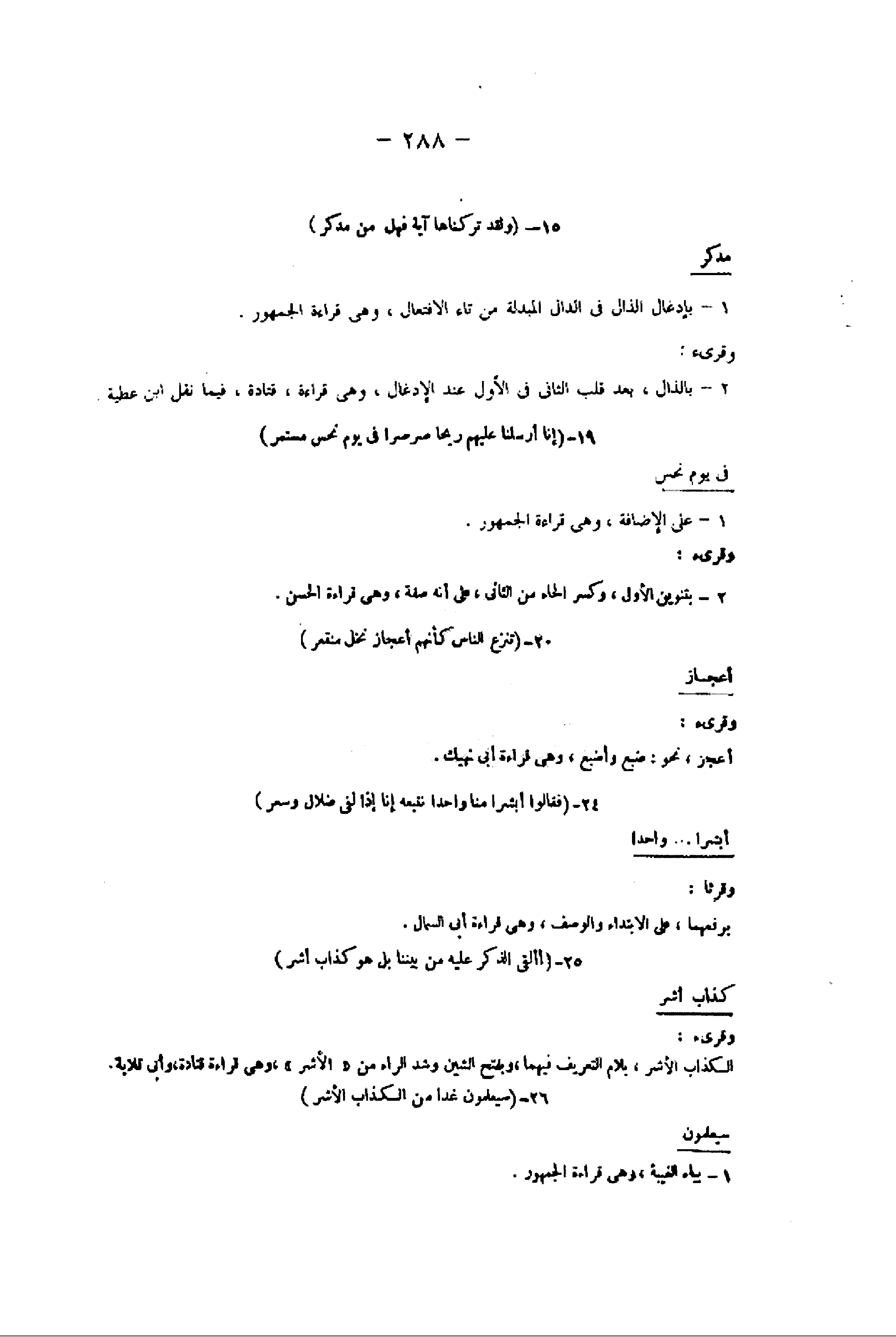 15- وَلَقَدْ تَرَكْناها آيَةً فَهَلْ مِنْ مُدَّكِرٍ مدكر 1- بإدغال الذال فى الدال المبدلة من تاء الافتعال، وهى قراءة الجمهور.
