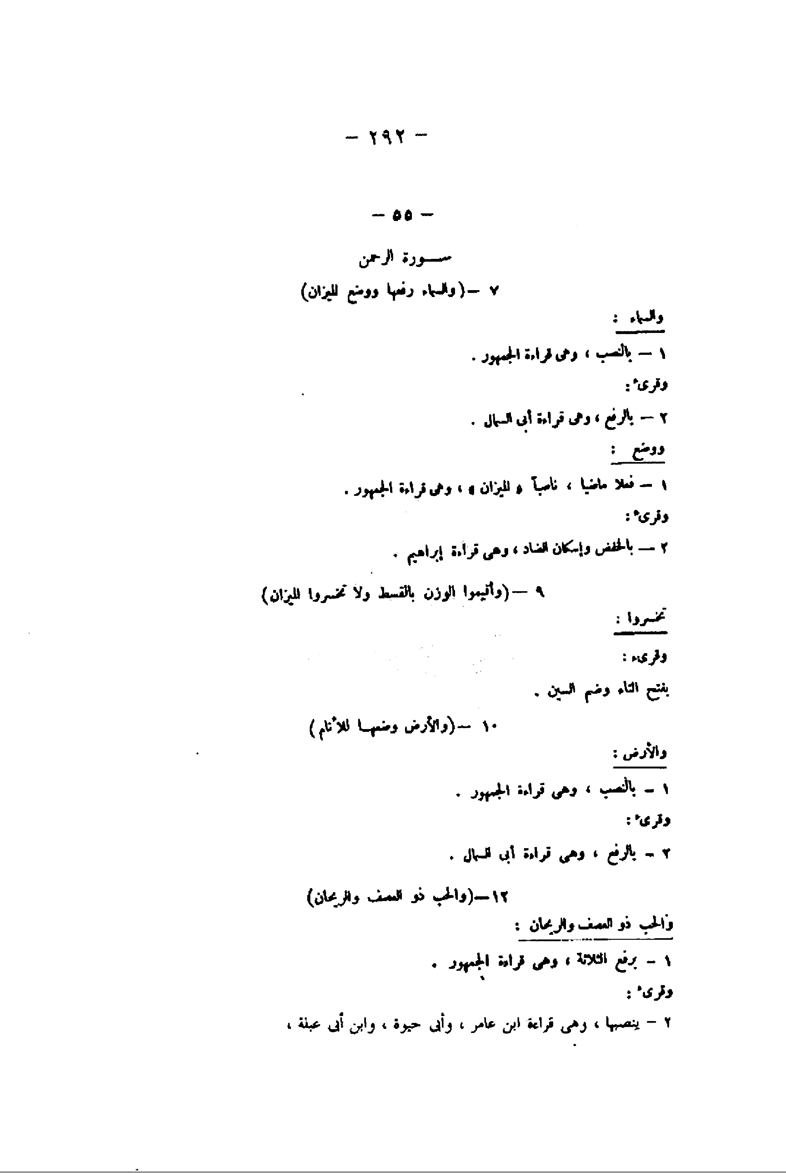 1- فعلا ماضيا، ناصبا «الميزان» ، وهى قراءة الجمهور.