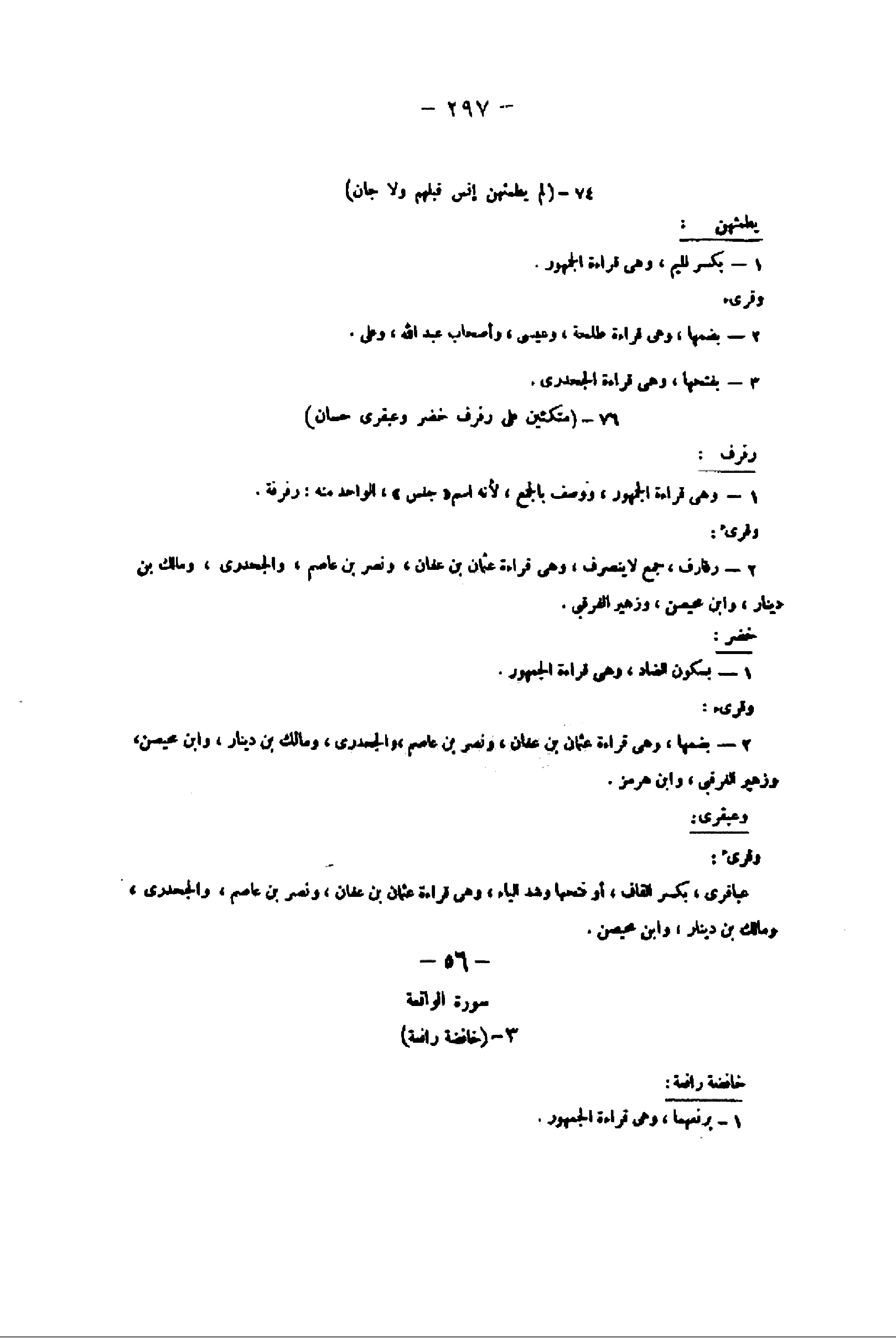 2- رفارف، جمع لا ينصرف، وهى قراءة عثمان بن عفان، ونصر بن عاصم، والجحدري، ومالك بن دينار، وابن محيصن، وزهير الفرقى.