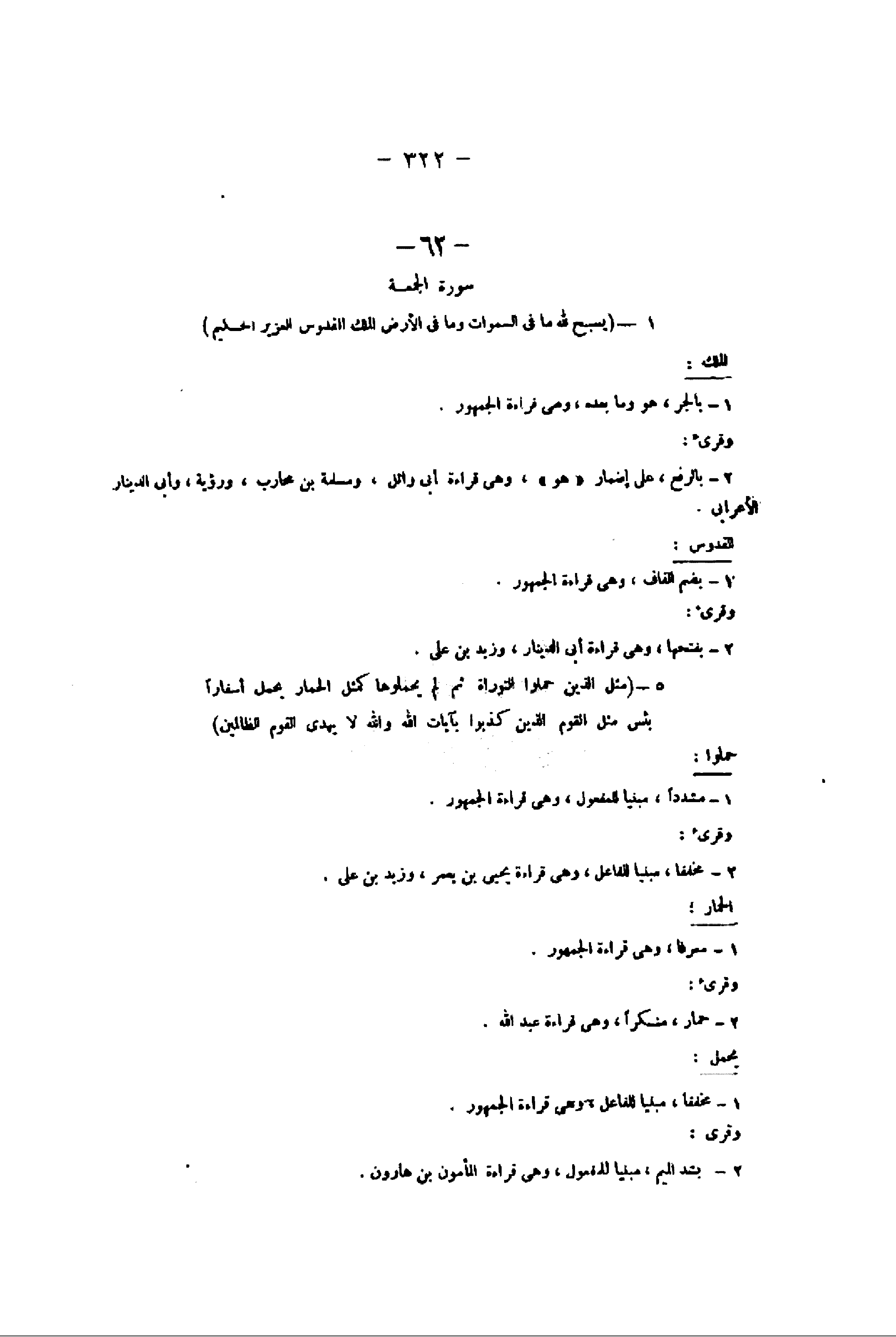 5- مَثَلُ الَّذِينَ حُمِّلُوا التَّوْراةَ ثُمَّ لَمْ يَحْمِلُوها كَمَثَلِ الْحِمارِ يَحْمِلُ أَسْفاراً بِئْسَ مَثَلُ الْقَوْمِ الَّذِينَ كَذَّبُوا بِآياتِ اللَّهِ وَاللَّهُ لا يَهْدِي الْقَوْمَ الظَّالِمِينَ حملوا:
