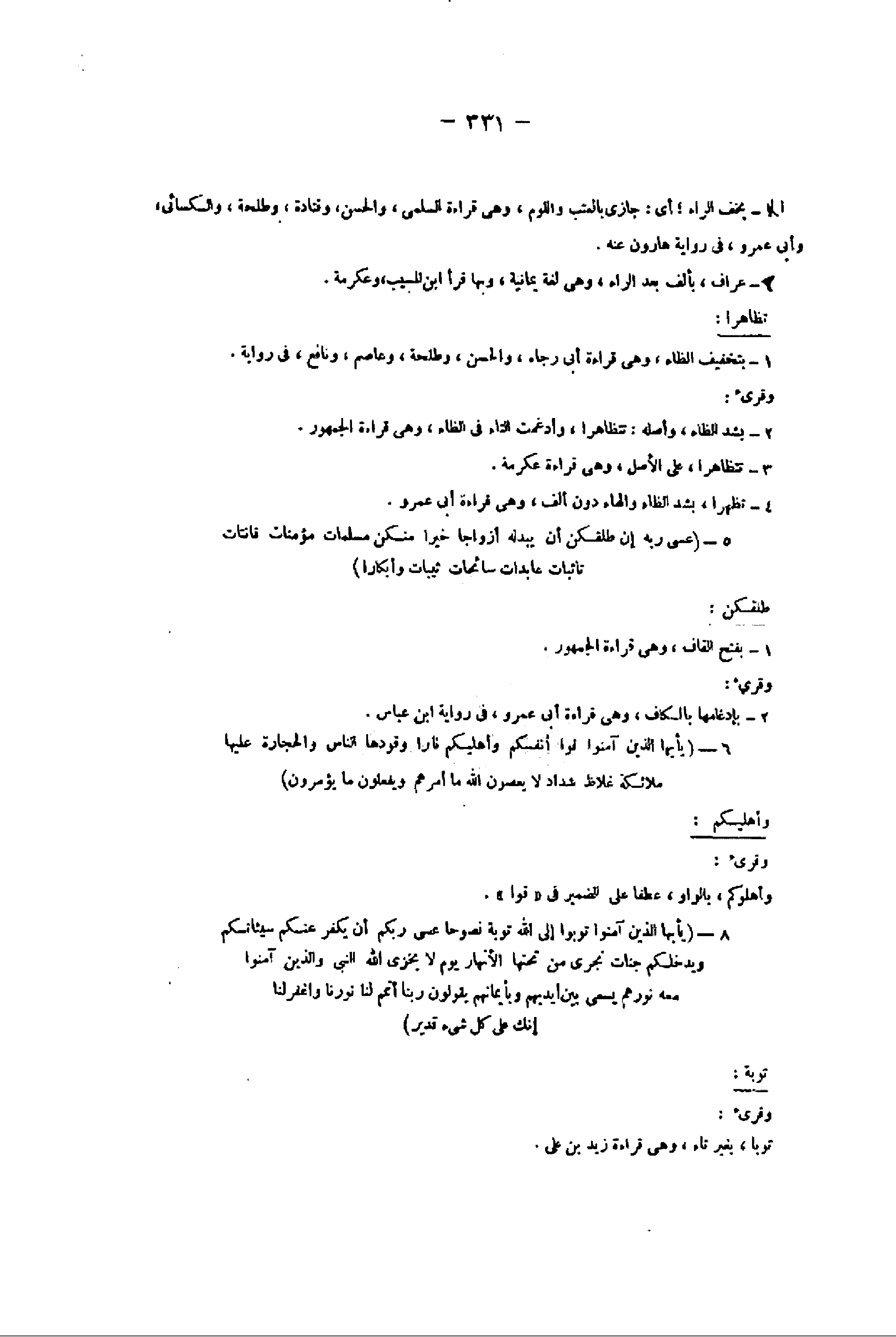 8- يا أَيُّهَا الَّذِينَ آمَنُوا تُوبُوا إِلَى اللَّهِ تَوْبَةً نَصُوحاً عَسى رَبُّكُمْ أَنْ يُكَفِّرَ عَنْكُمْ سَيِّئاتِكُمْ وَيُدْخِلَكُمْ جَنَّاتٍ تَجْرِي مِنْ تَحْتِهَا الْأَنْهارُ يَوْمَ لا يُخْزِي اللَّهُ النَّبِيَّ وَالَّذِينَ آمَنُوا مَعَهُ نُورُهُمْ يَسْعى بَيْنَ أَيْدِيهِمْ وَبِأَيْمانِهِمْ يَقُولُونَ رَبَّنا أَتْمِمْ لَنا نُورَنا وَاغْفِرْ لَنا إِنَّكَ عَلى كُلِّ شَيْءٍ قَدِيرٌ توبة: