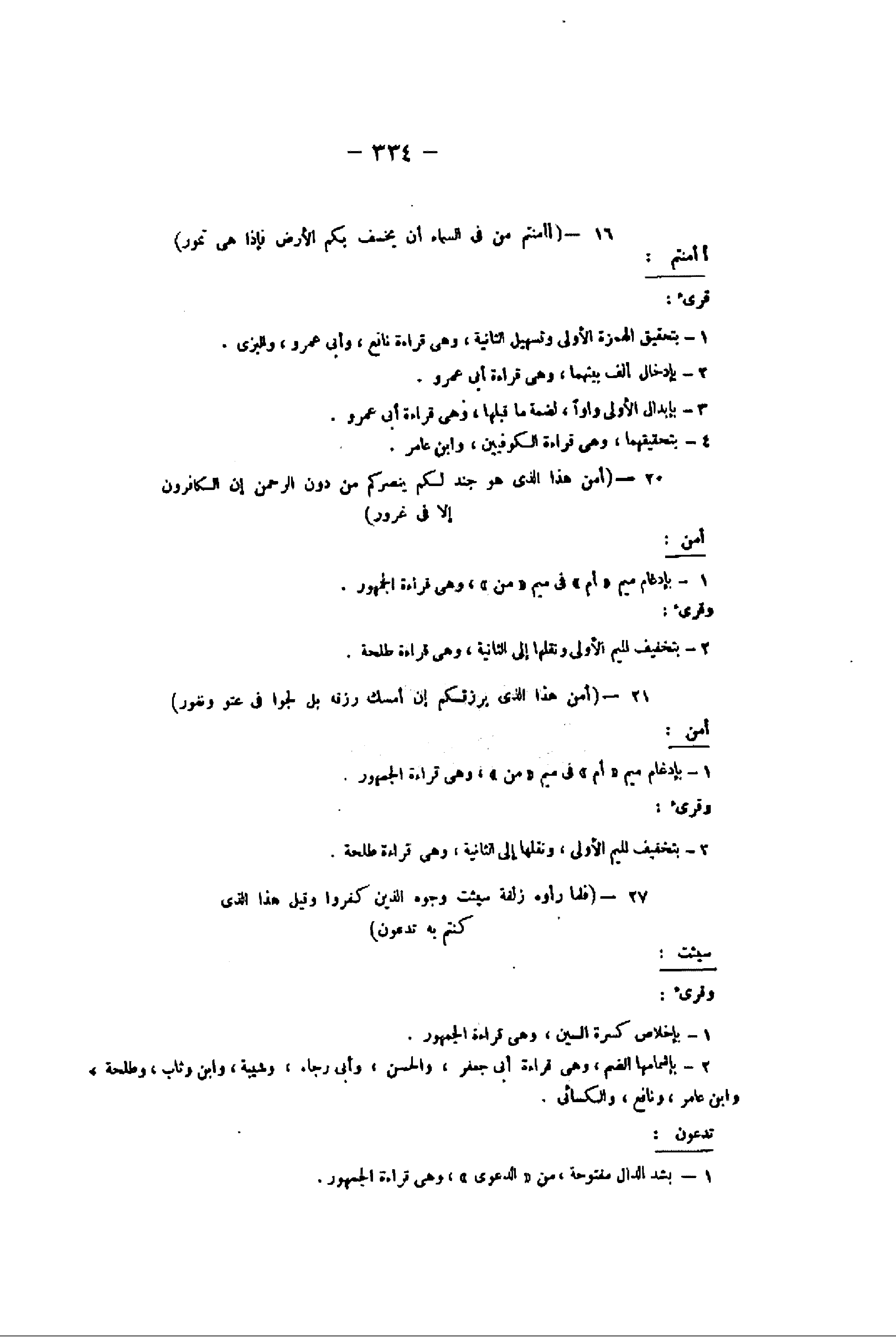 1- بإدغام ميم «أم» فى ميم «من» ، وهى قراءة الجمهور.