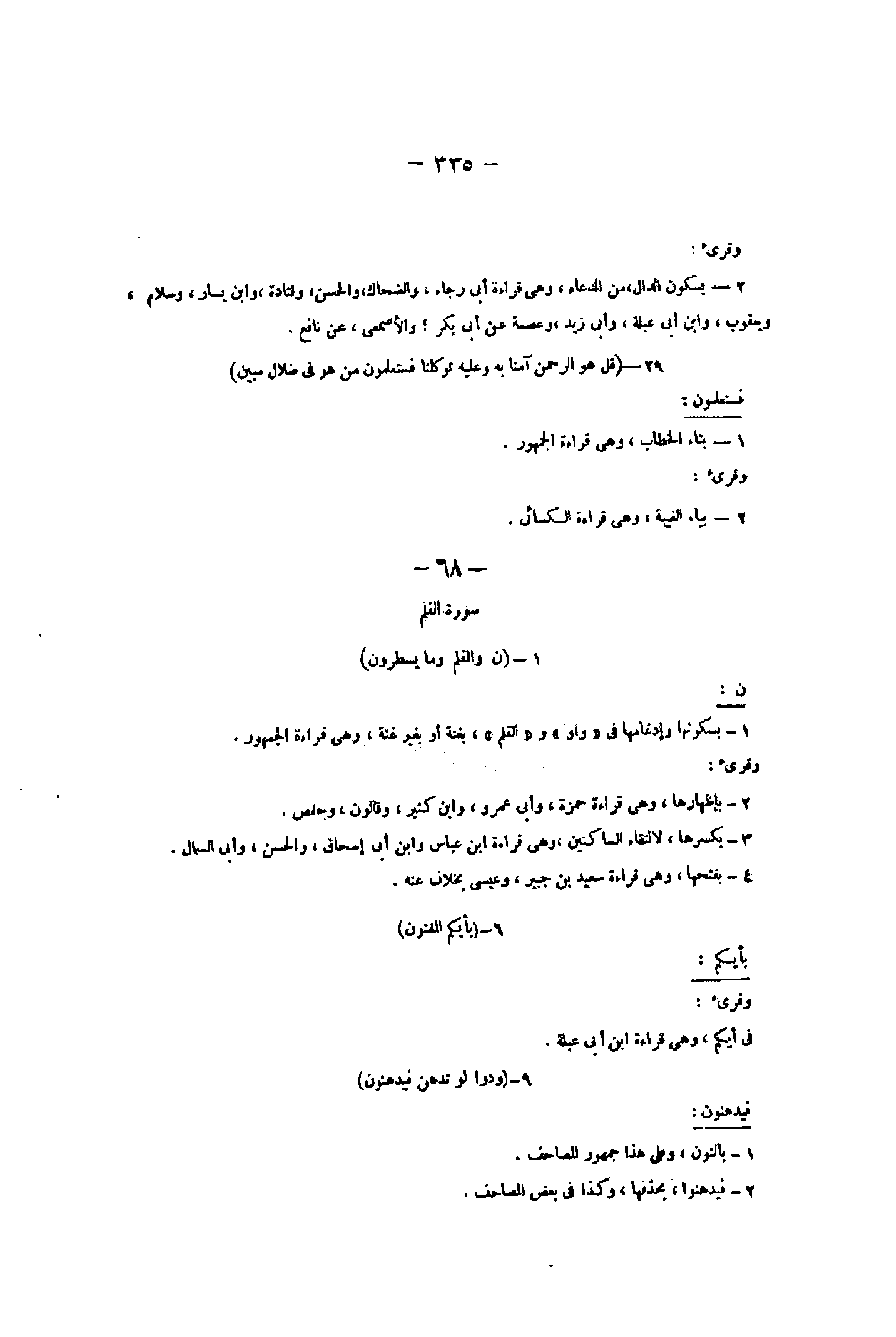 2- فيدهنوا، بحذفها، وكذا فى بعض المصاحف.