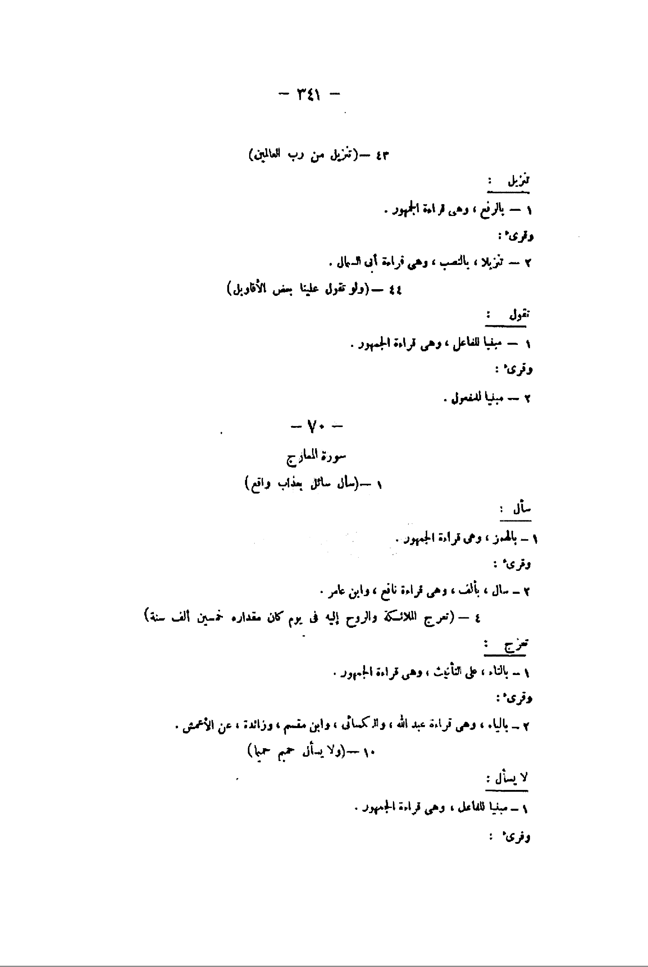 1- سَأَلَ سائِلٌ بِعَذابٍ واقِعٍ سأل: