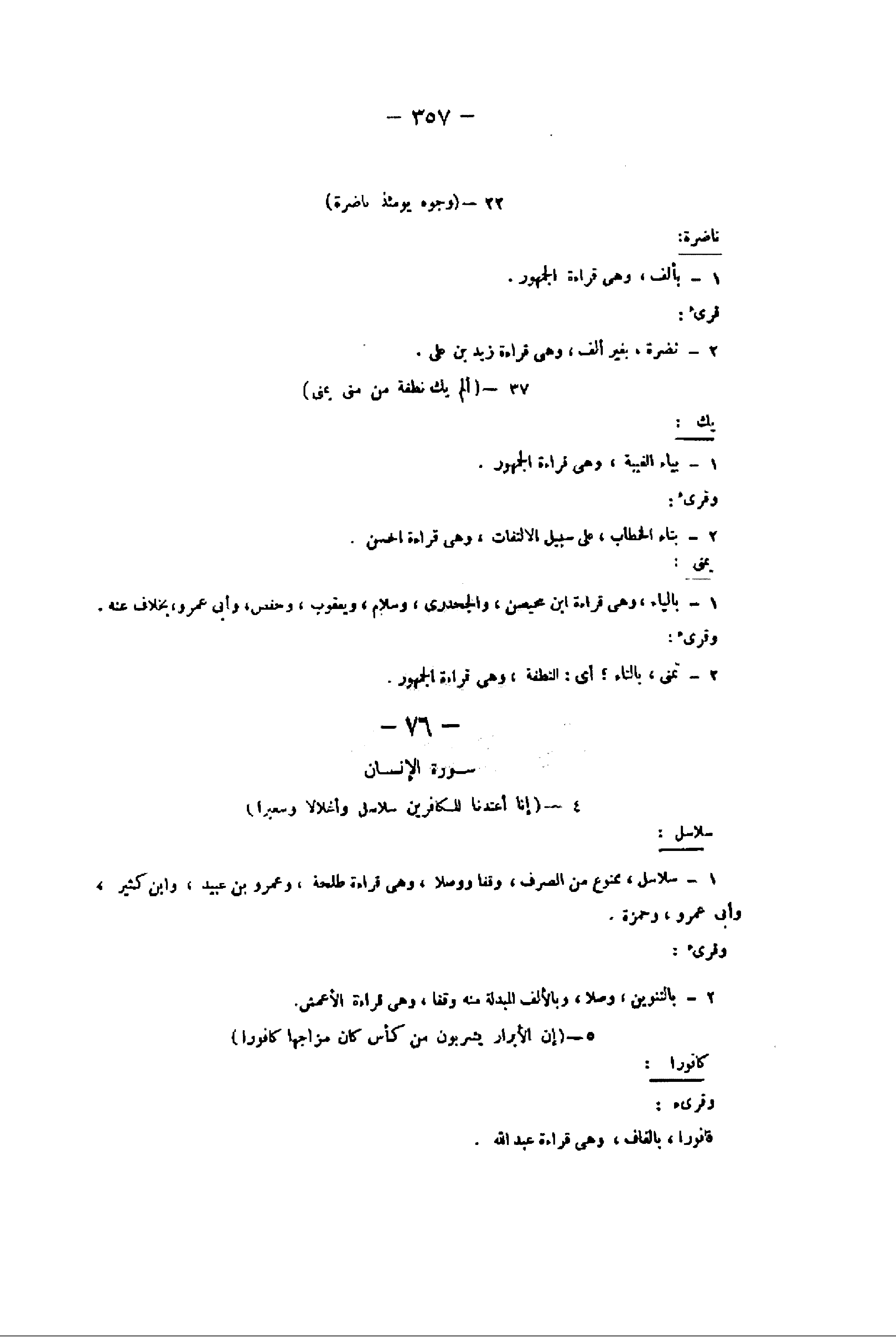 1- سلاسل، ممنوع من الصرف، وقفا ووصلا، وهى قراءة طلحة، وعمرو بن عبيد، وابن كثير، وأبى عمرو، وحمزة.
