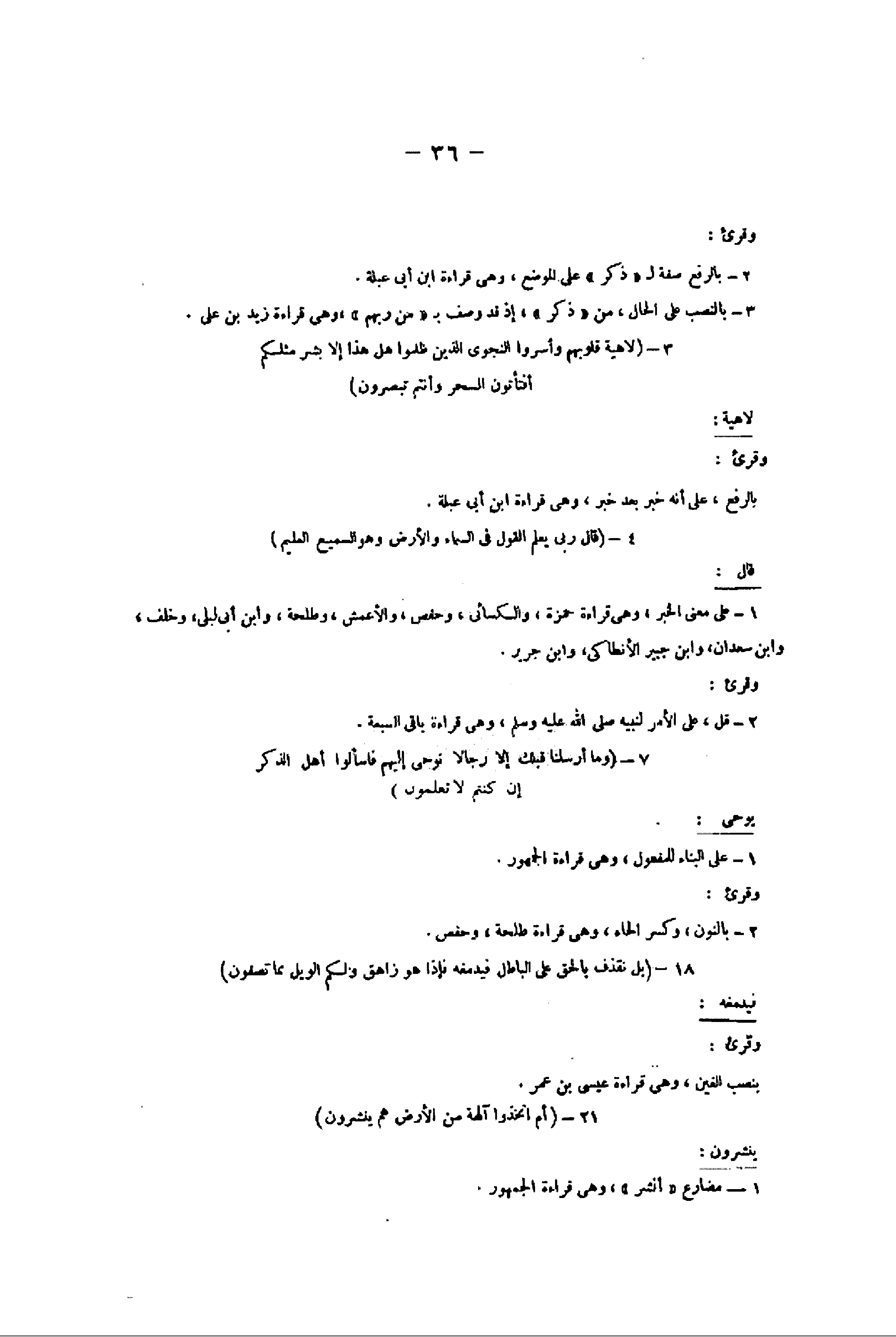 1- على معنى الخبر، وهى قراءة حمزة، والكسائي، وحفص، والأعمش، وطلحة، وابن أبى ليلى، وخلف، وابن سعدان، وابن جبير الأنطاكى، وابن جرير.