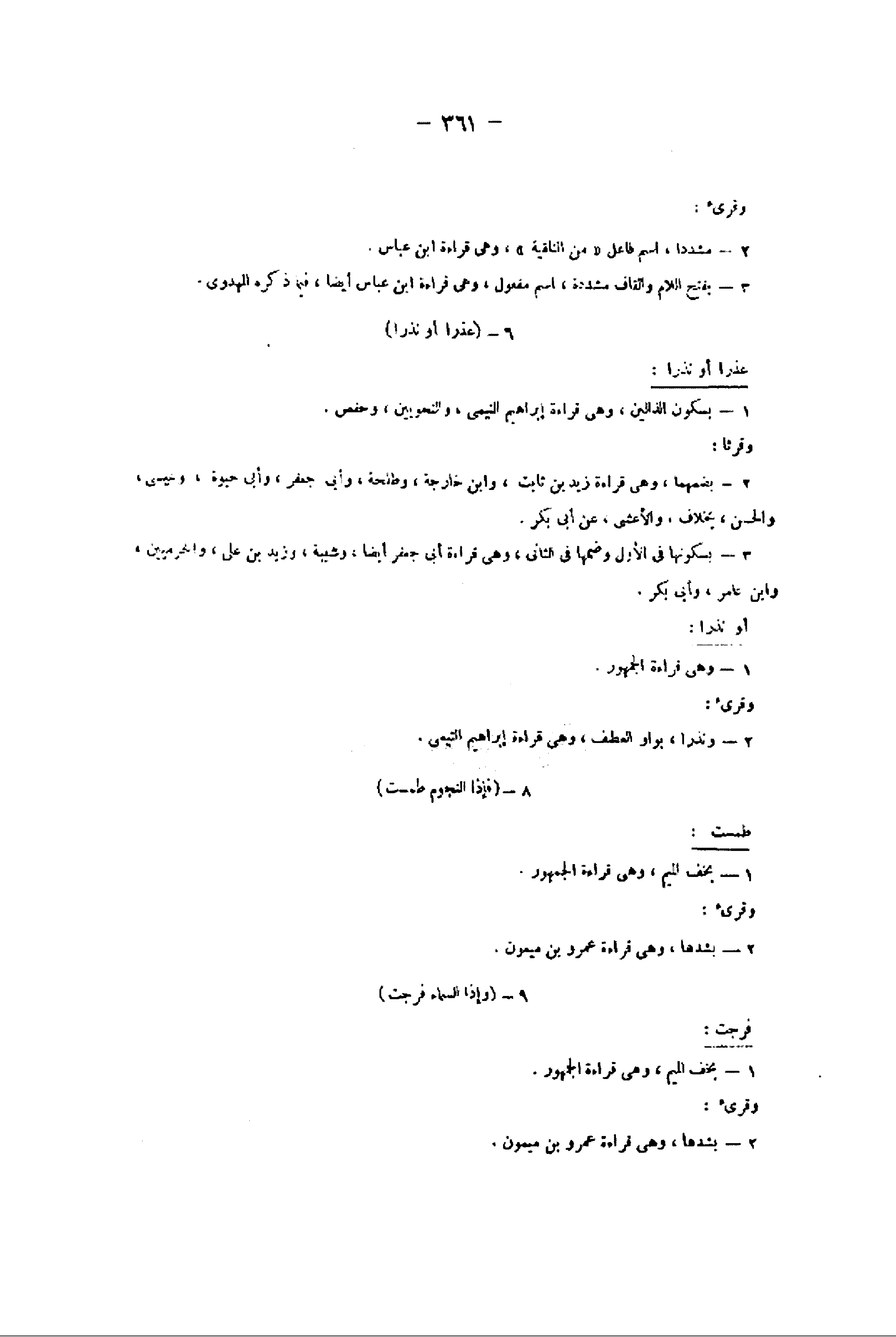 2- ونذرا، بواو العطف، وهى قراءة إبراهيم التيمي.