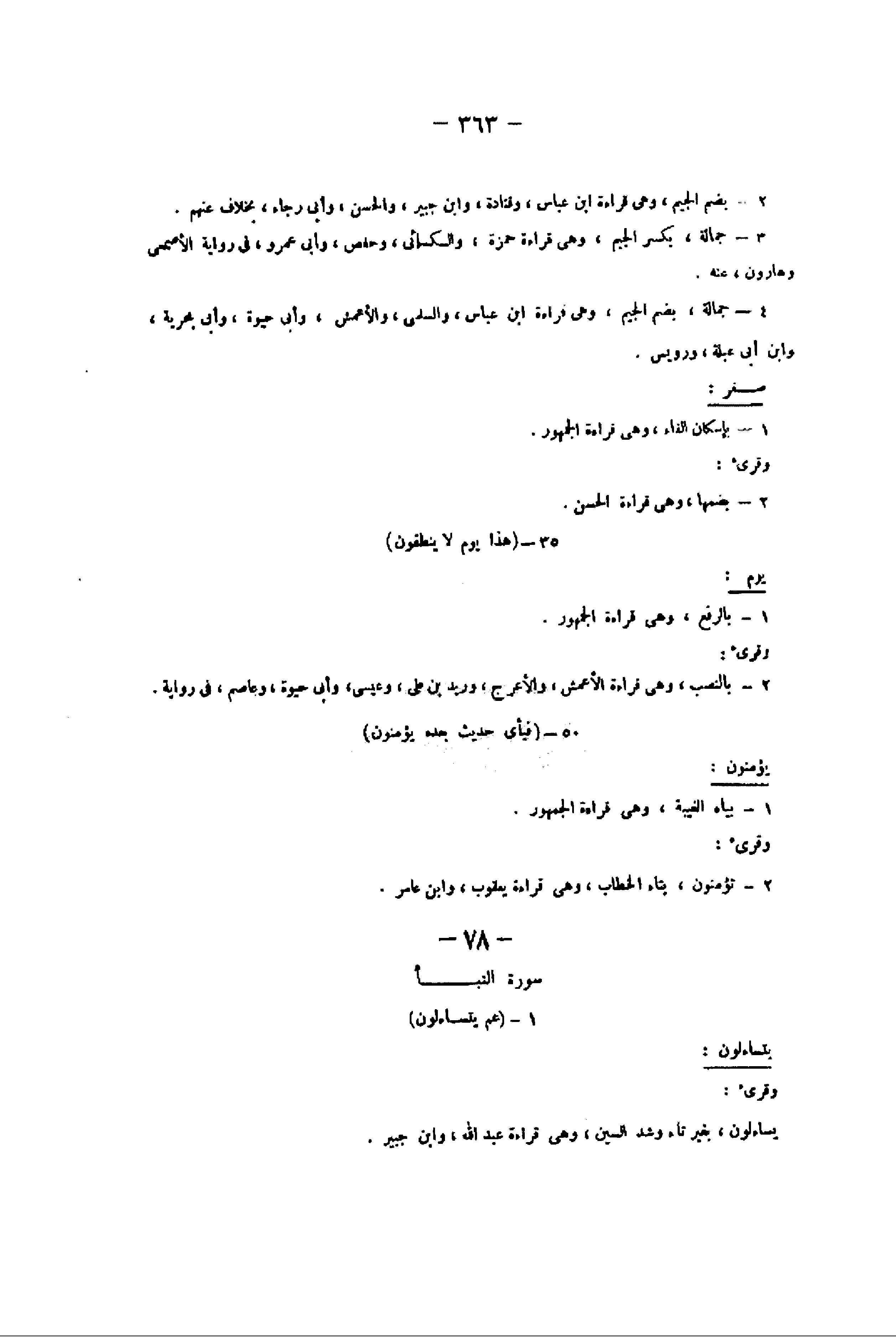 يساءلون، بغير تاء وشد السين، وهى قراءة عبد الله، وابن جبير.