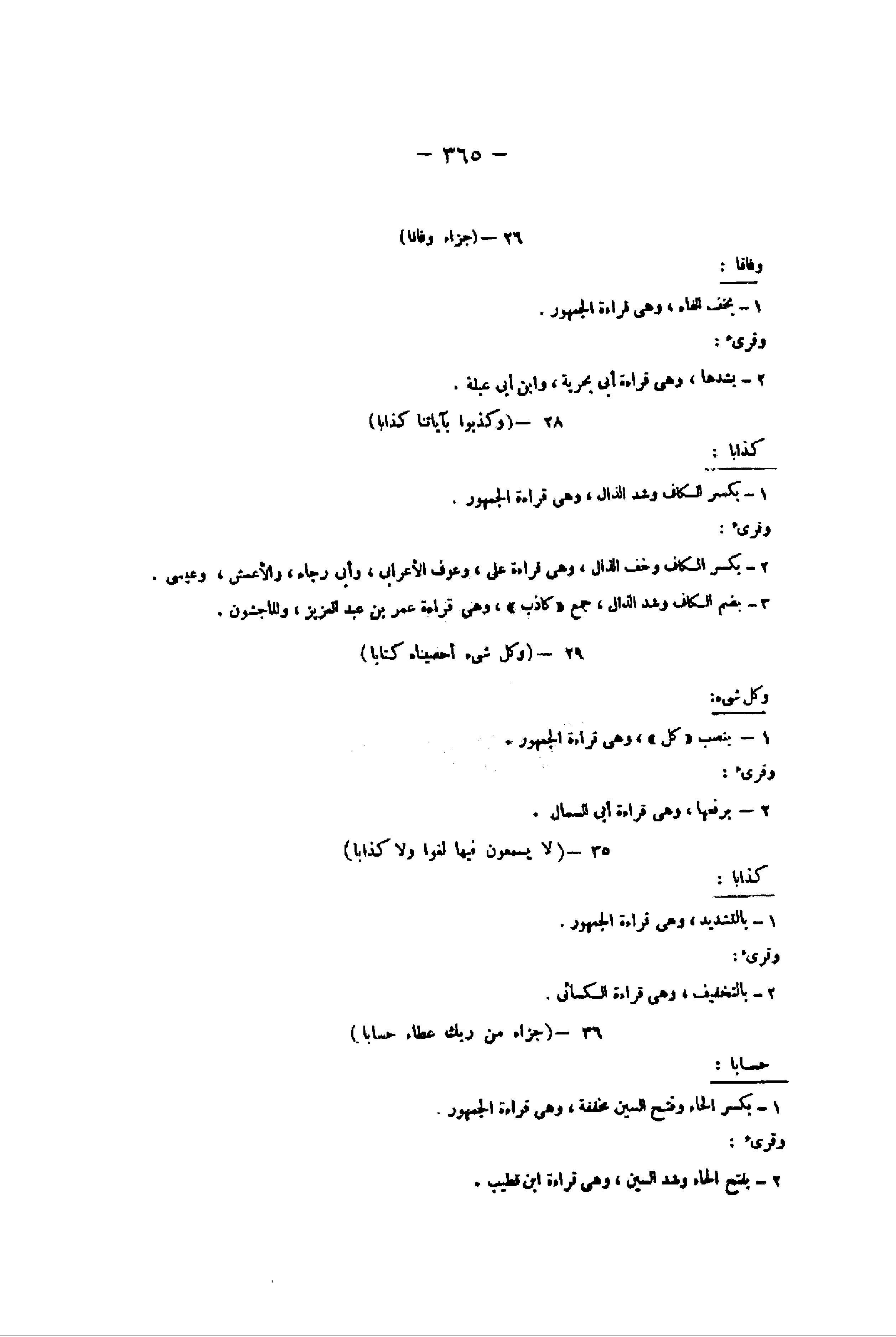 2- بكسر الكاف وخف الذال، وهى قراءة على، وعوف الأعرابى، وأبى رجاء، والأعمش، وعيسى.