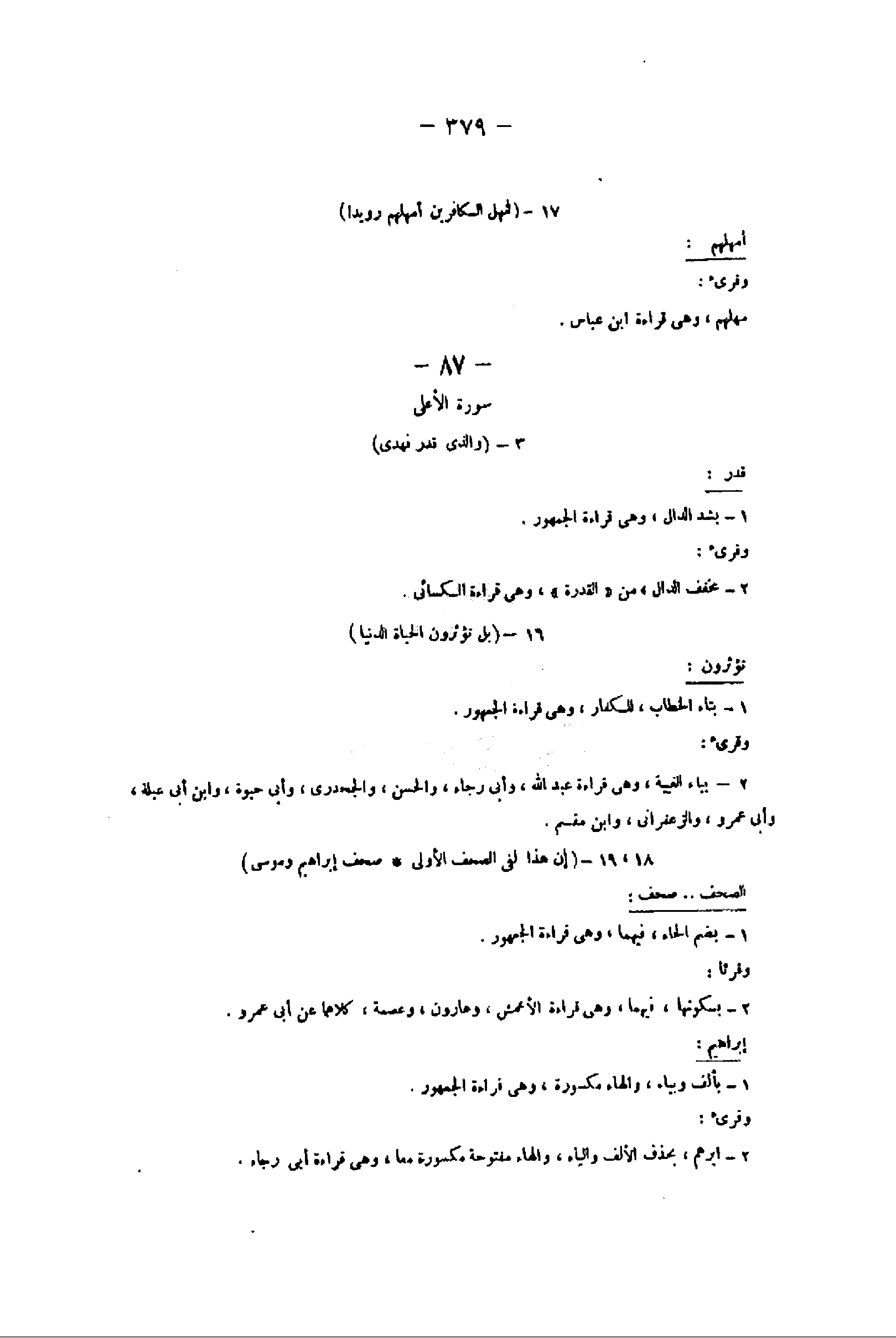 2- إبرهم، بحذف الألف والياء، والهاء مفتوحة مكسورة معا، وهى قراءة أبى رجاء.