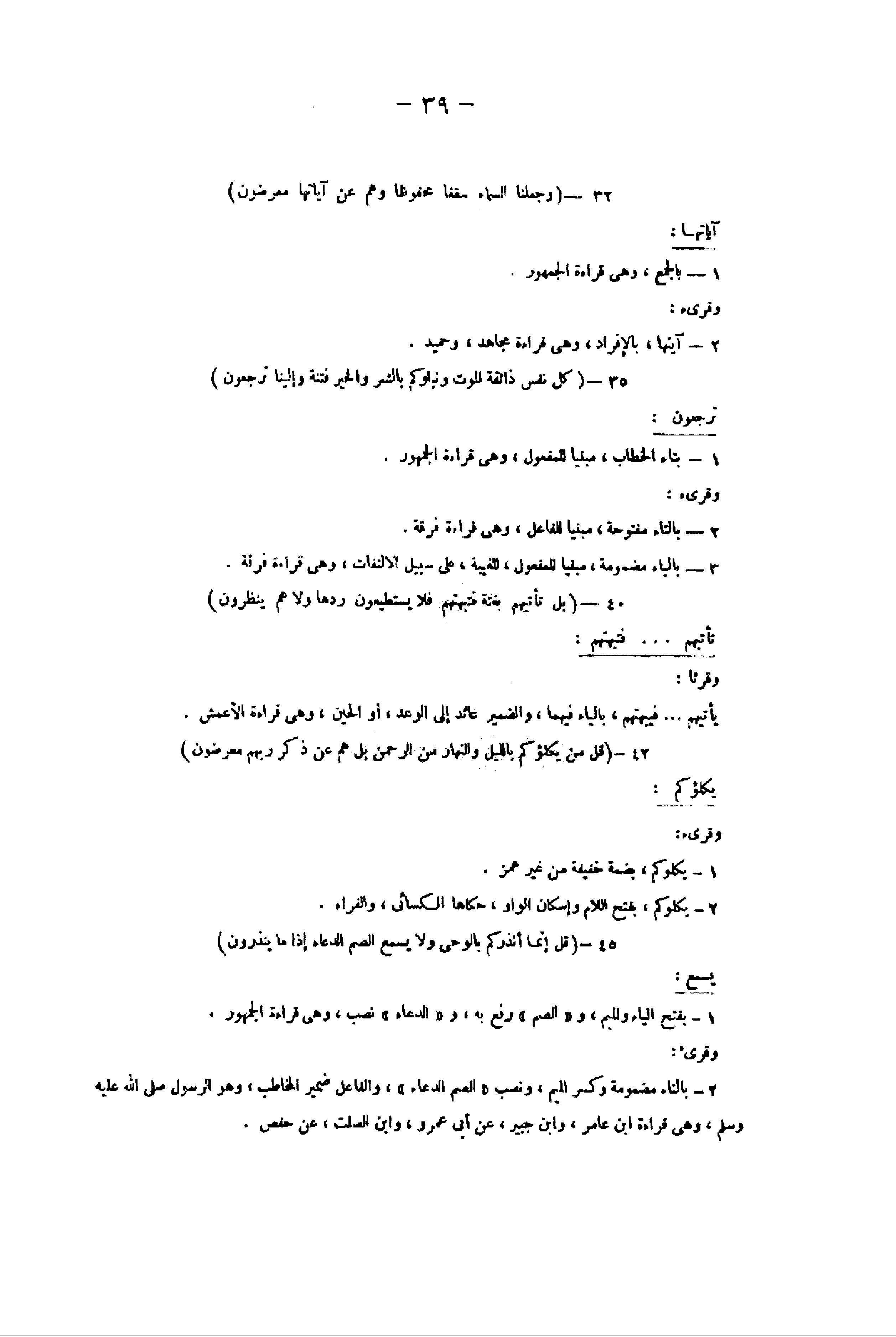 3- بالياء مضمومة، مبنيا للمفعول، للغيبة، على سبيل الالتفات، وهى قراءة فرقة.