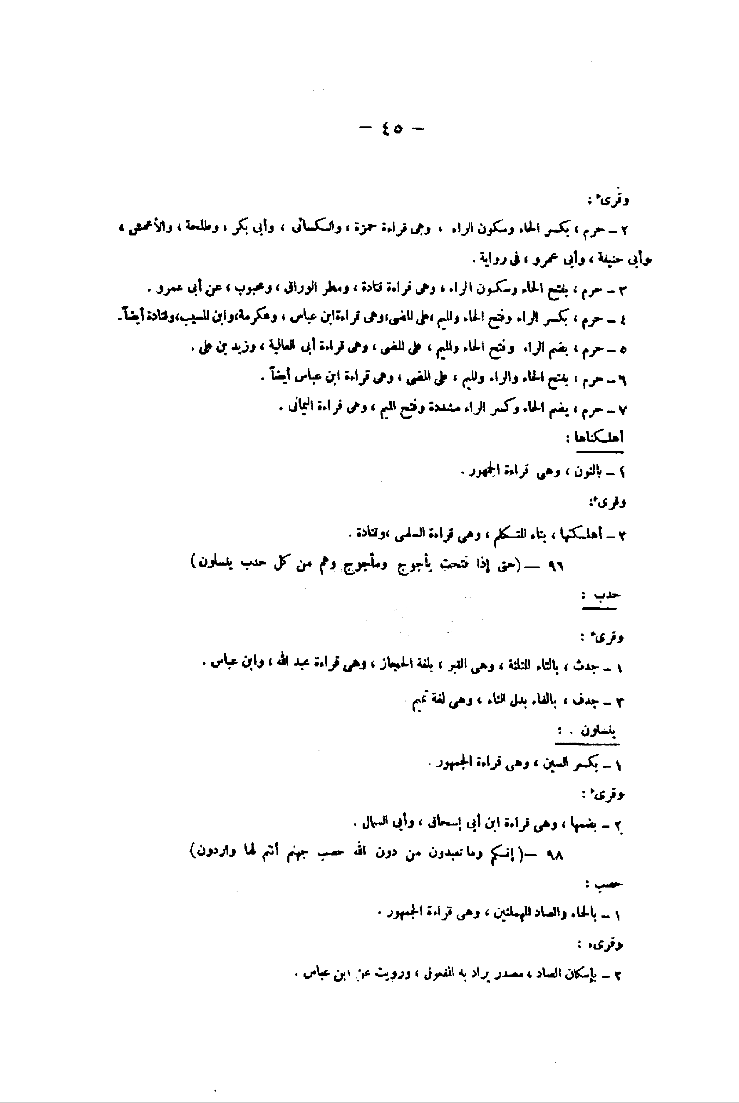 6- حرم، بفتح الحاء والراء والميم، على المضي، وهى قراءة ابن عباس أيضا.