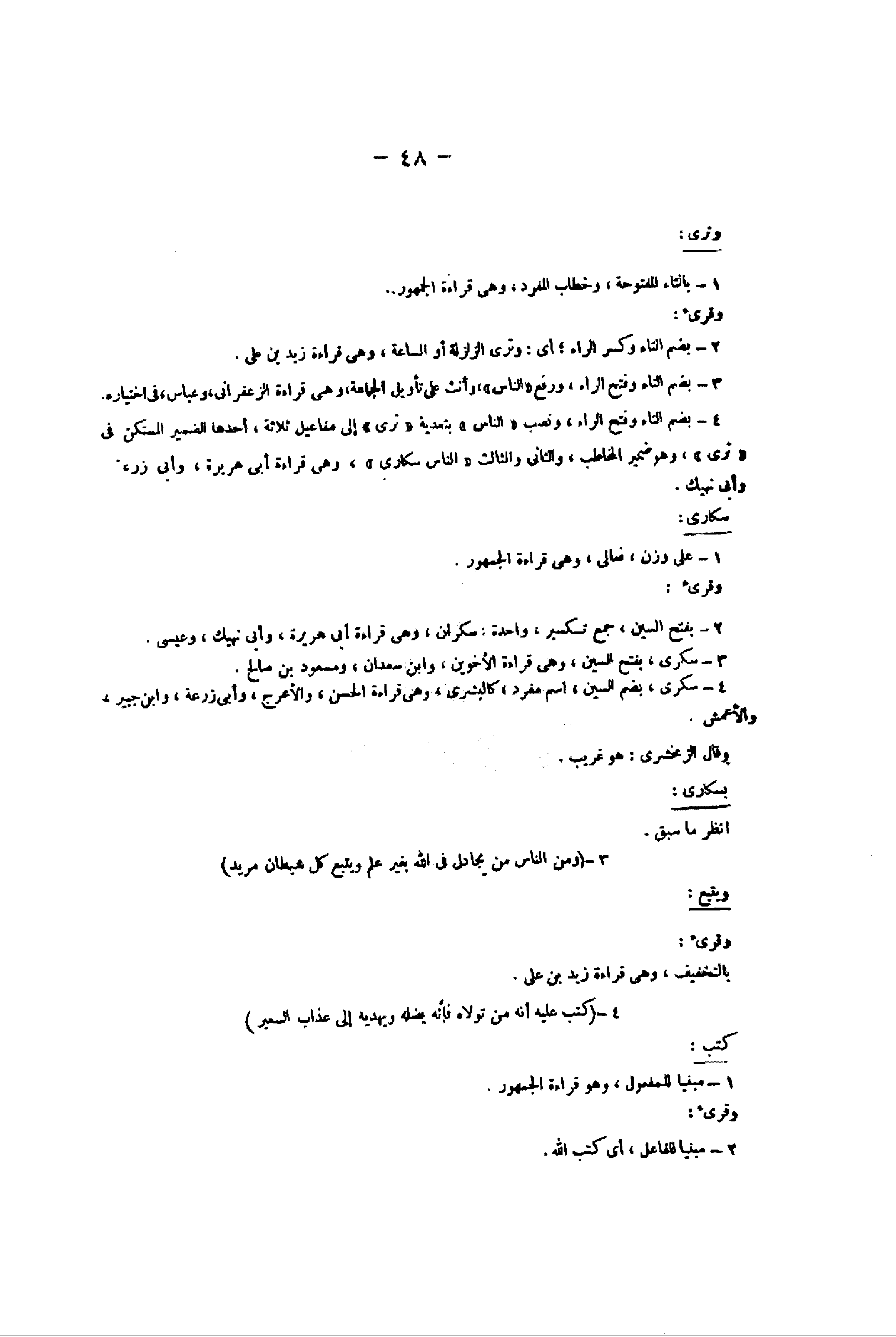 3- سكرى، بفتح السين، وهى قراءة الأخوين، وابن سعدان، ومسعود بن صالح.