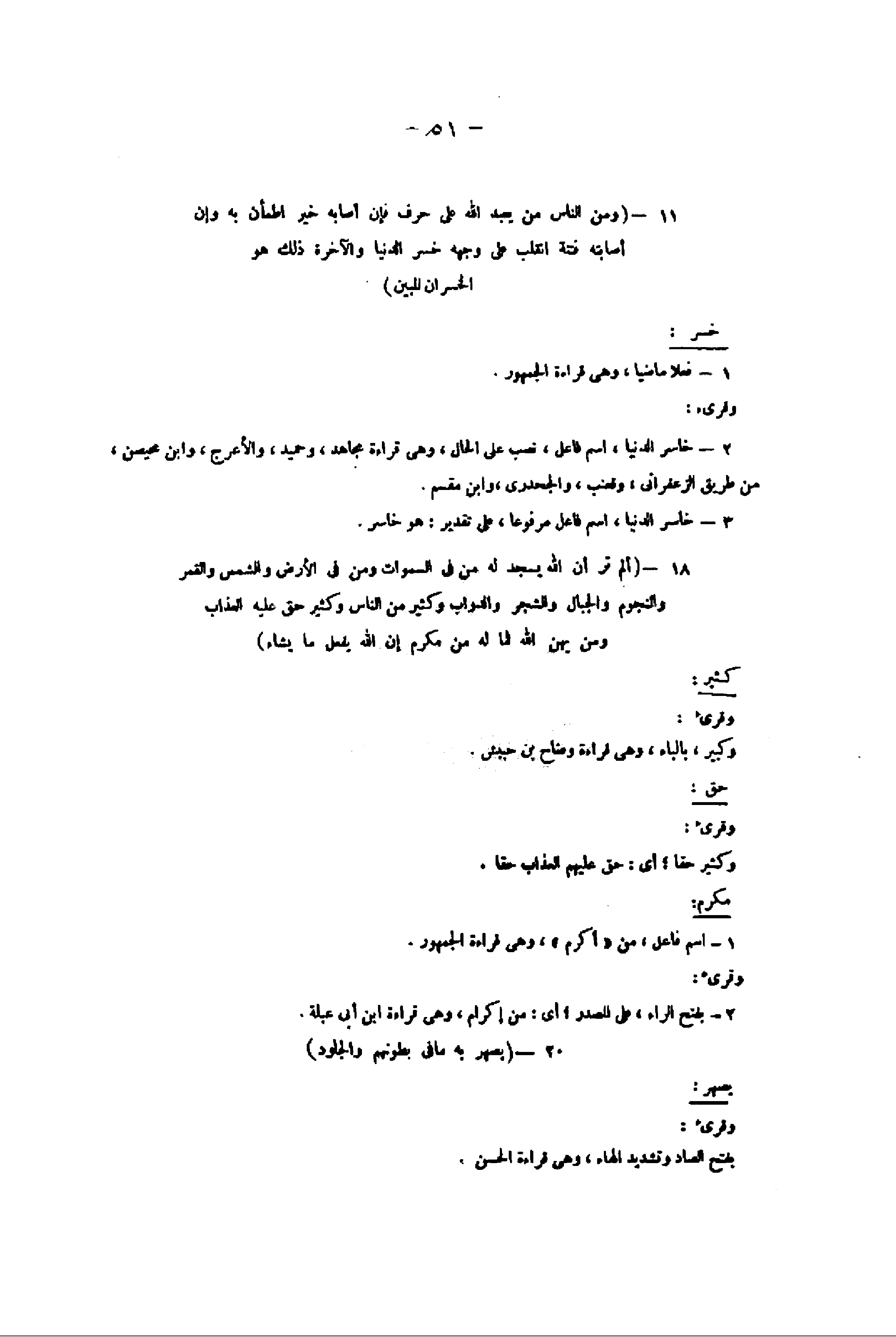 11- وَمِنَ النَّاسِ مَنْ يَعْبُدُ اللَّهَ عَلى حَرْفٍ فَإِنْ أَصابَهُ خَيْرٌ اطْمَأَنَّ بِهِ وَإِنْ أَصابَتْهُ فِتْنَةٌ انْقَلَبَ عَلى وَجْهِهِ خَسِرَ الدُّنْيا وَالْآخِرَةَ ذلِكَ هُوَ الْخُسْرانُ الْمُبِينُ خسر: