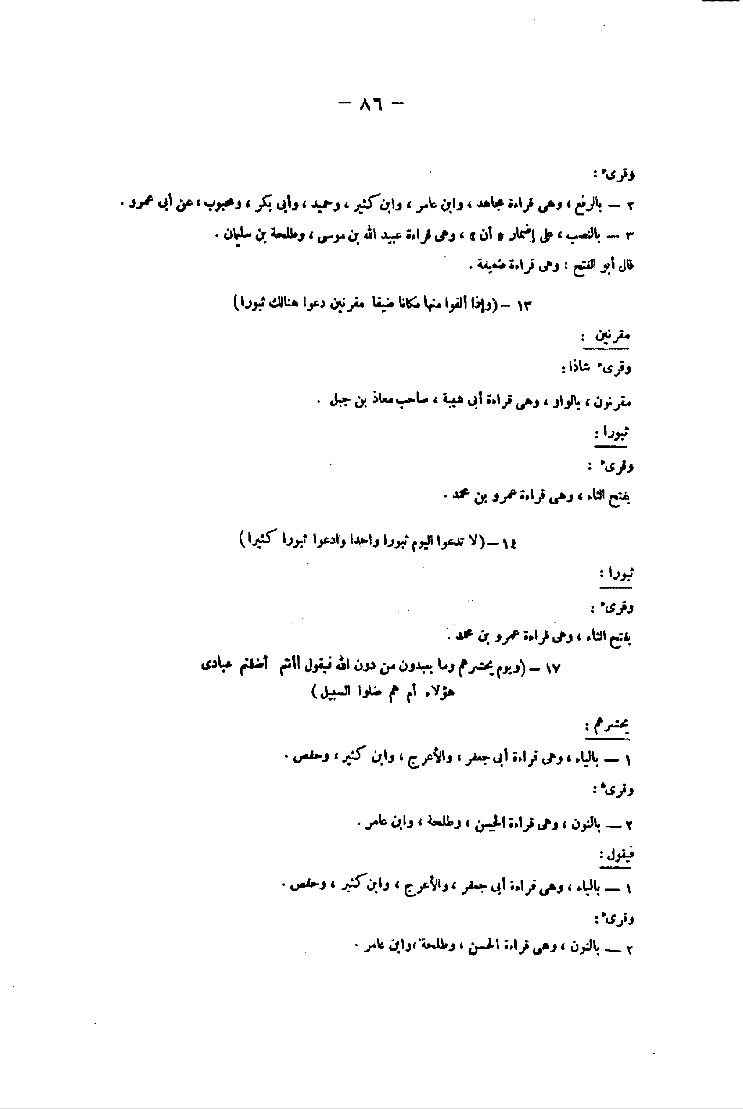 مقرنون، بالواو، وهى قراءة أبى شيبة، صاحب معاذ بن جبل.