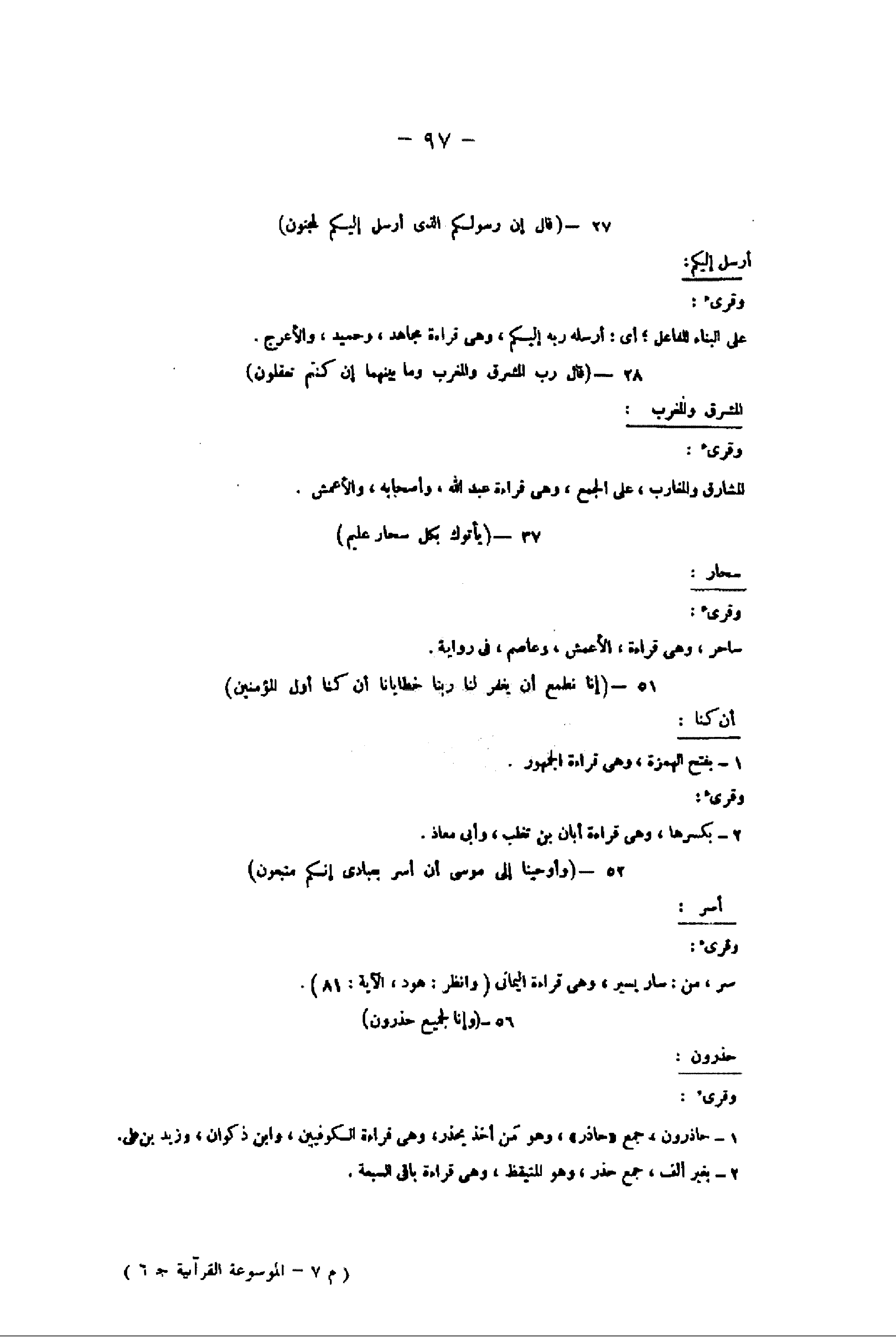 52- وَأَوْحَيْنا إِلى مُوسى أَنْ أَسْرِ بِعِبادِي إِنَّكُمْ مُتَّبَعُونَ أسر: