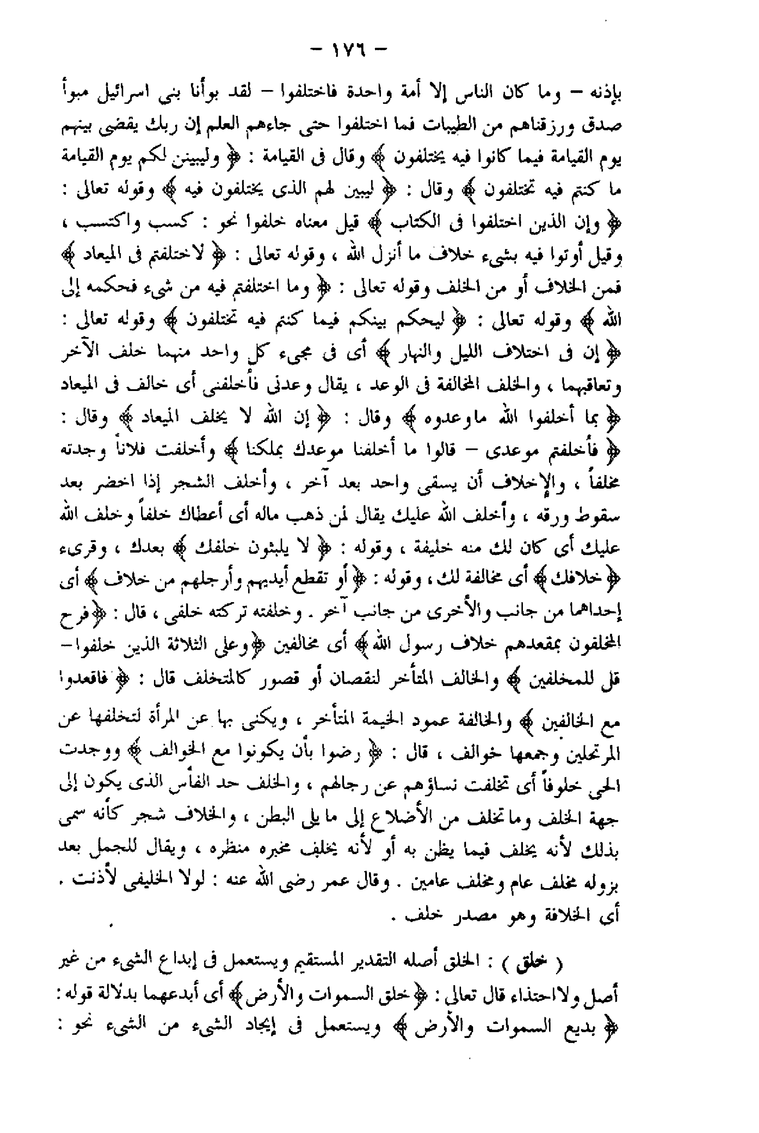 وَإِنَّ الَّذِينَ اخْتَلَفُوا فِي الْكِتابِ قيل معناه خلفوا نحو: كسب واكتسب، وقيل أوتوا فيه بشىء خلاف ما أنزل اللَّه، وقوله تعالى: لَاخْتَلَفْتُمْ فِي الْمِيعادِ فمن الخلاف أو من الخلف وقوله تعالى: وَمَا اخْتَلَفْتُمْ فِيهِ مِنْ شَيْءٍ فَحُكْمُهُ إِلَى اللَّهِ وقوله تعالى: فَأَحْكُمُ بَيْنَكُمْ فِيما كُنْتُمْ فِيهِ تَخْتَلِفُونَ وقوله تعالى: