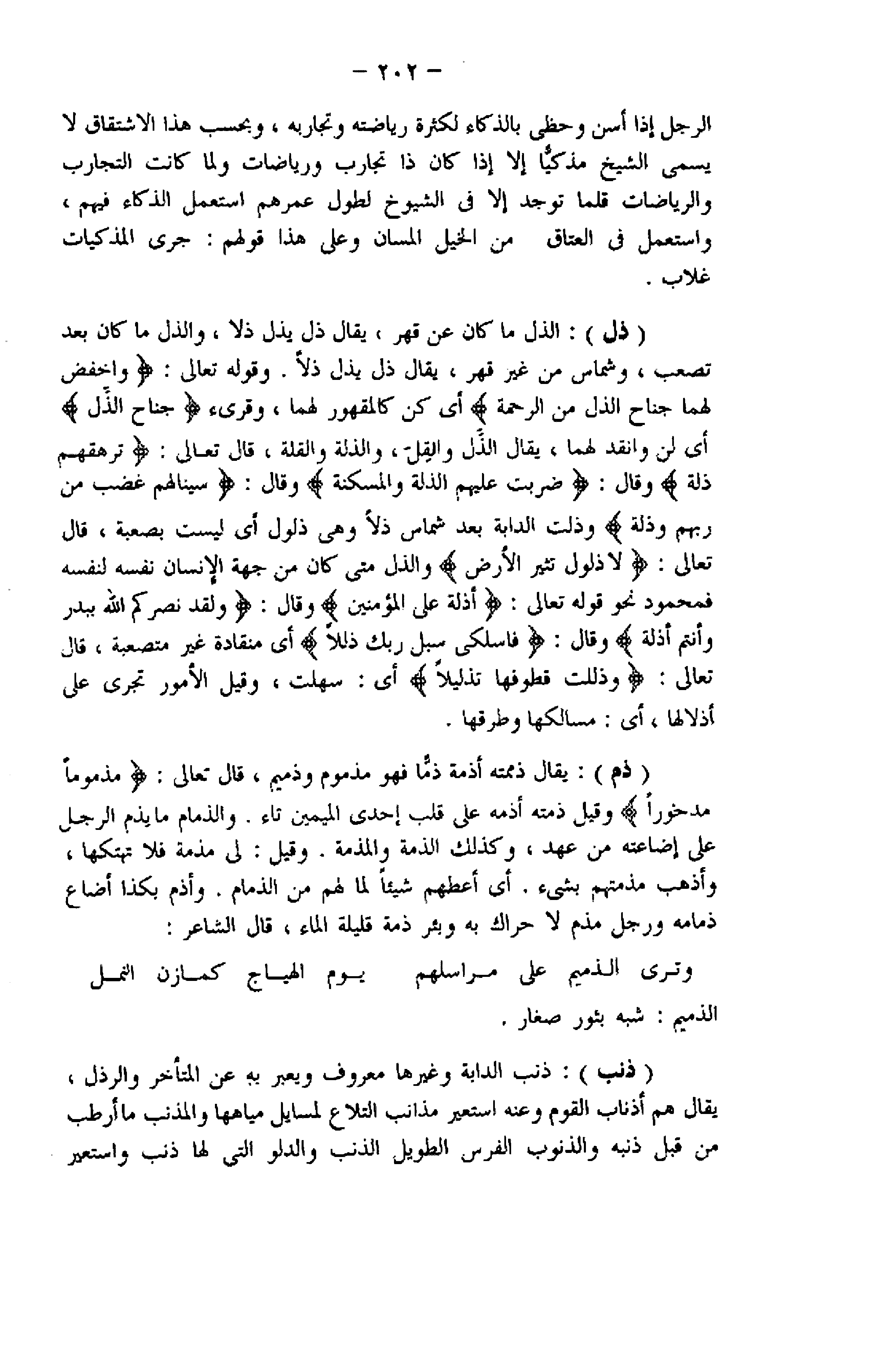 (ذم) : يقال ذممته أذمة ذمّا فهو مذموم وذميم، قال تعالى: مَذْمُوماً مَدْحُوراً وقيل ذمته أذمه على قلب إحدى الميمين تاء. والذمام ما يذم الرجل على إضاعته من عهد، وكذلك الذمة والمذمة. وقيل: لى مذمة فلا تهتكها، وأذهب مذمتهم بشىء. أي أعطهم شيئا لما لهم من الذمام. وأذم بكذا أضاع ذمامه ورجل مذم لا حراك به وبئر ذمة قليلة الماء، قال الشاعر: