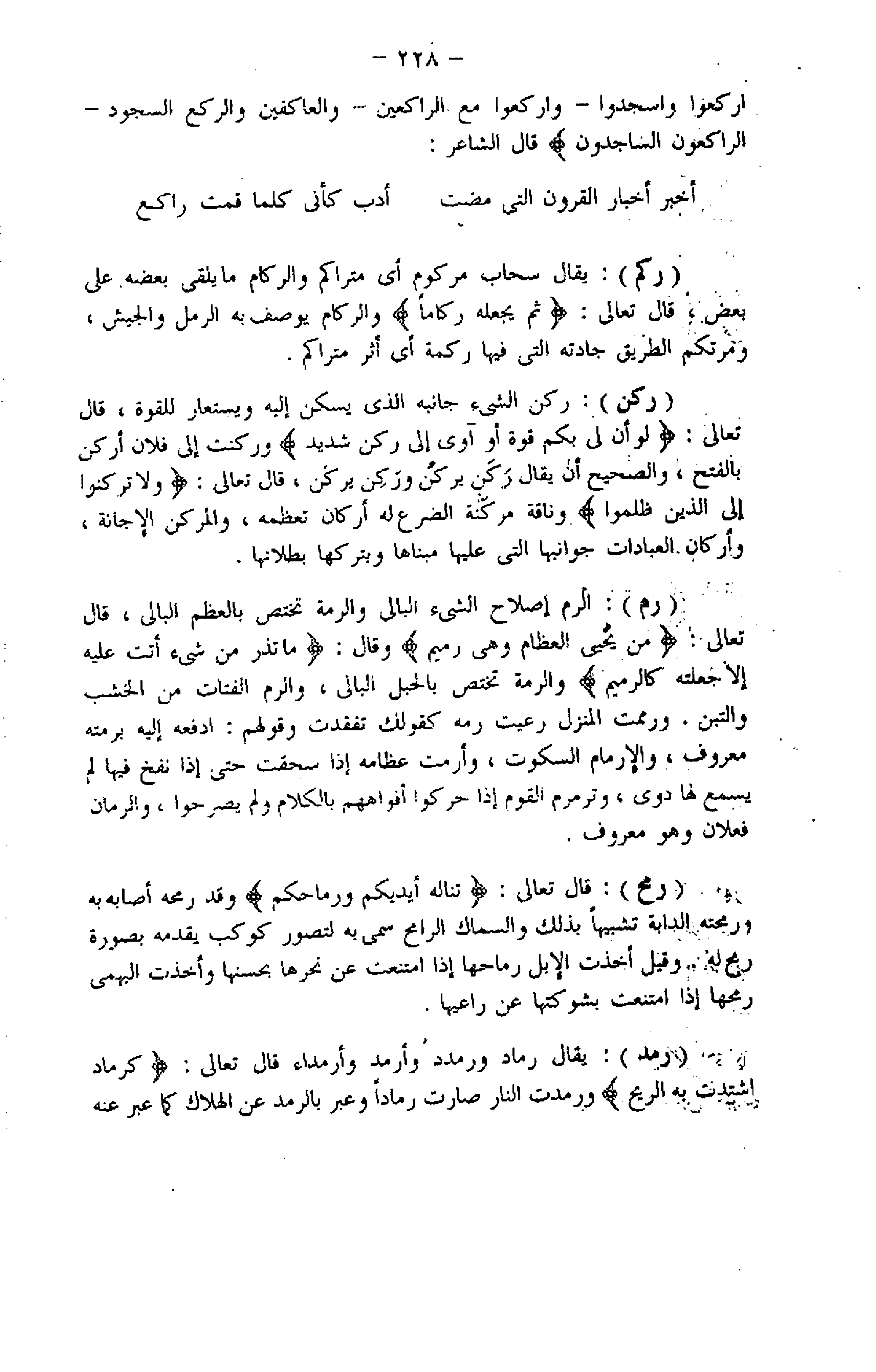 - وَارْكَعُوا مَعَ الرَّاكِعِينَ- وَالْعاكِفِينَ وَالرُّكَّعِ السُّجُودِ- الرَّاكِعُونَ السَّاجِدُونَ قال الشاعر: