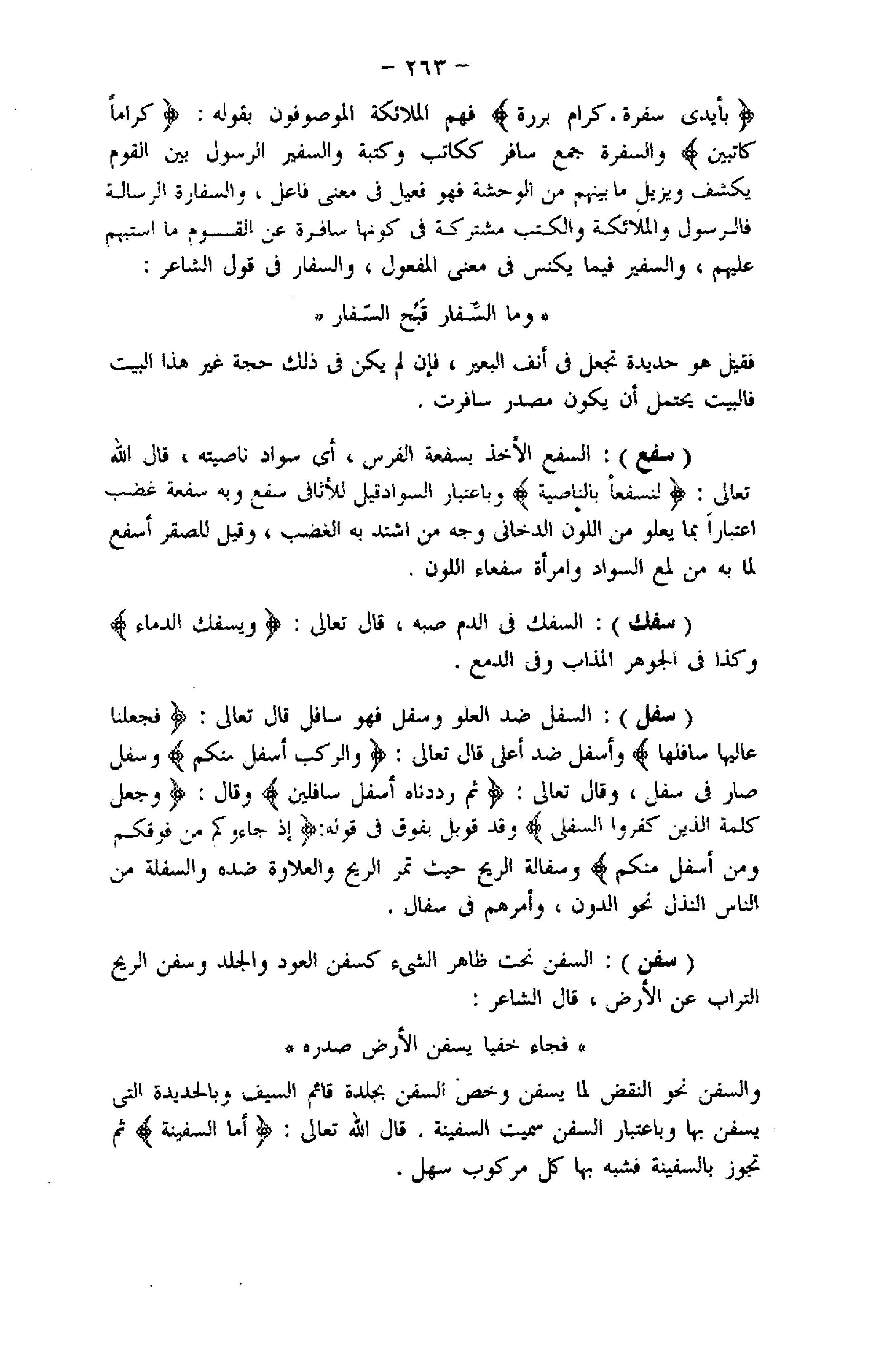 (سفك) : السفك فى الدم صبه، قال تعالى: وَيَسْفِكُ الدِّماءَ وكذا فى الجوهر المذاب وفى الدمع.