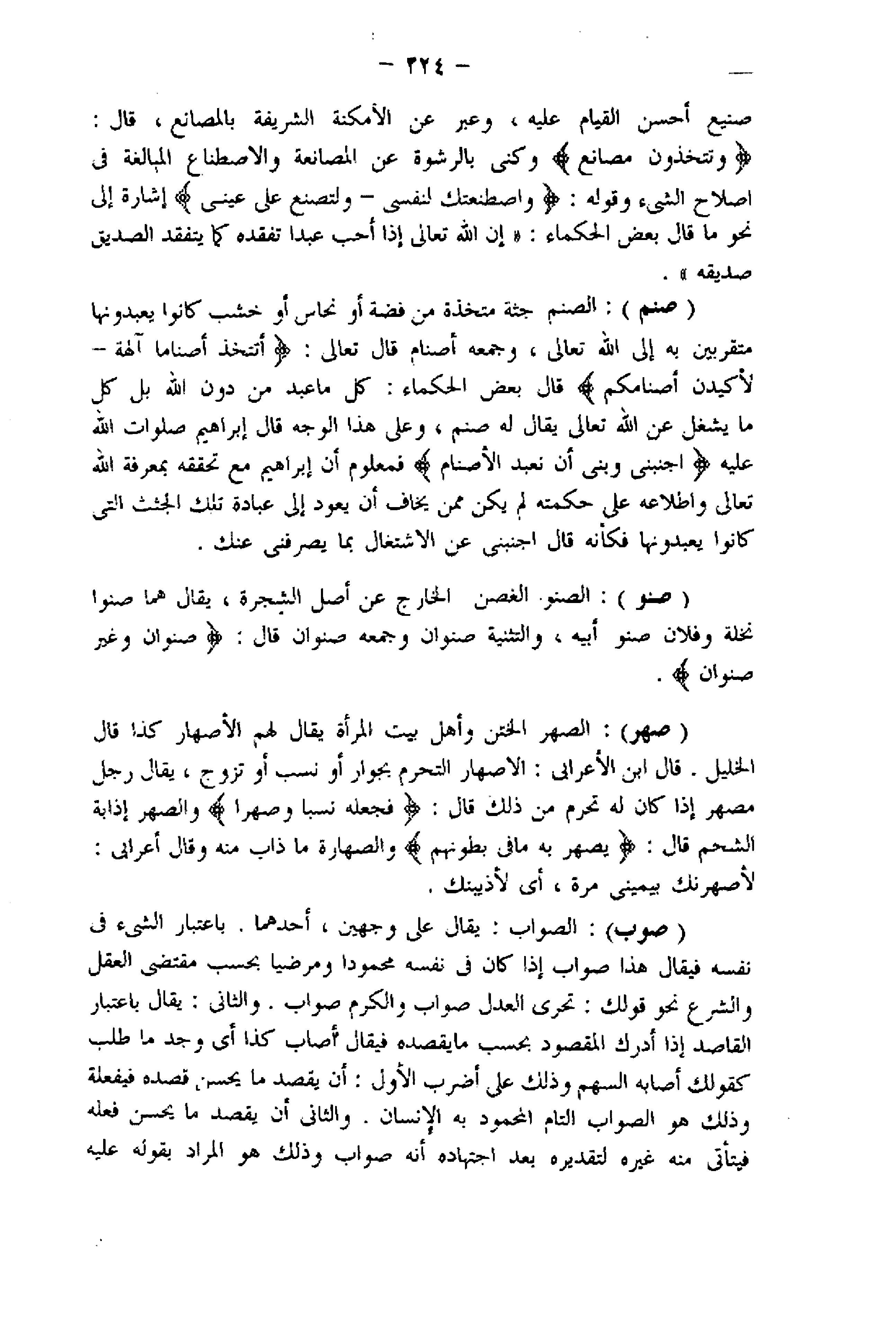 صنيع أحسن القيام عليه، وعبر عن الأمكنة الشريفة بالمصانع، قال: