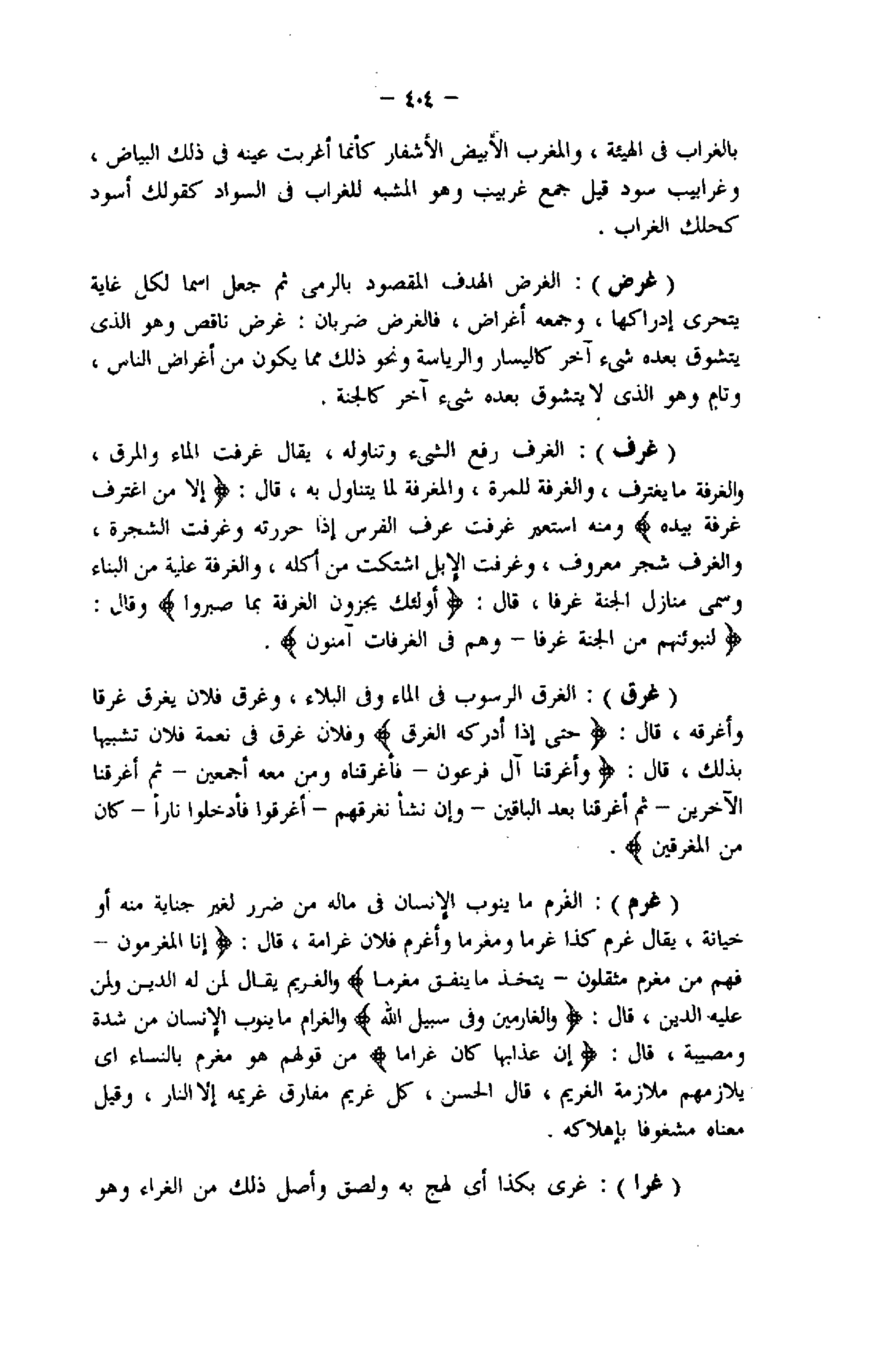 (غرق) : الغرق الرسوب فى الماء وفى البلاء، وغرق فلان يغرق غرقا وأغرقه، قال: حَتَّى إِذا أَدْرَكَهُ الْغَرَقُ وفلان غرق فى نعمة فلان تشبيها بذلك، قال: وَأَغْرَقْنا آلَ فِرْعَوْنَ- فَأَغْرَقْناهُ وَمَنْ مَعَهُ جَمِيعاً- ثُمَّ أَغْرَقْنَا الْآخَرِينَ- ثُمَّ أَغْرَقْنا بَعْدُ الْباقِينَ- وَإِنْ نَشَأْ نُغْرِقْهُمْ- أُغْرِقُوا فَأُدْخِلُوا ناراً- فَكانَ مِنَ الْمُغْرَقِينَ.