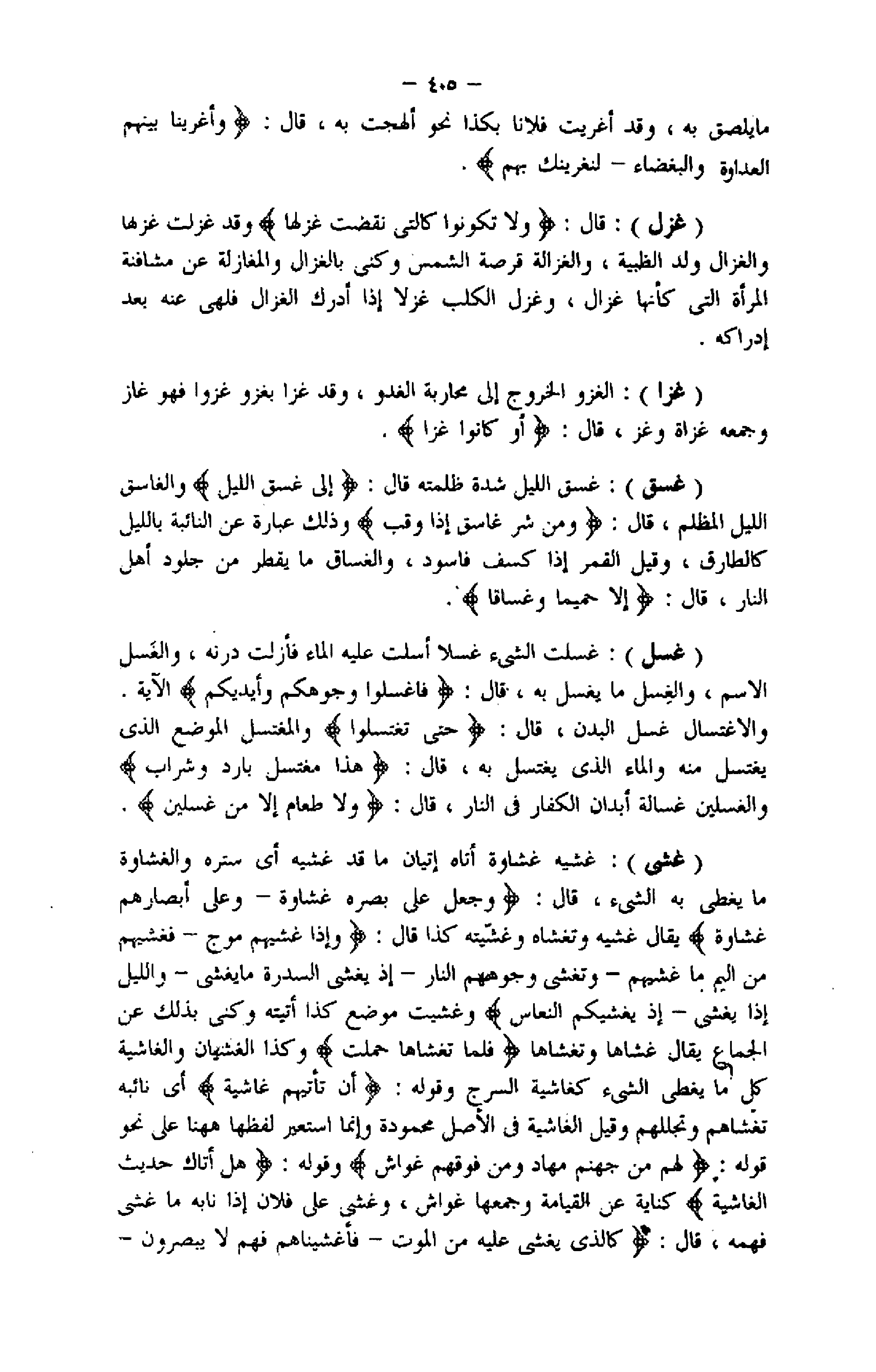 والاغتسال غسل البدن، قال: حَتَّى تَغْتَسِلُوا والمغتسل الموضع الذي يغتسل منه والماء الذي يغتسل به، قال: هذا مُغْتَسَلٌ بارِدٌ وَشَرابٌ والغسلين غسالة أبدان الكفار فى النار، قال: وَلا طَعامٌ إِلَّا مِنْ غِسْلِينٍ.