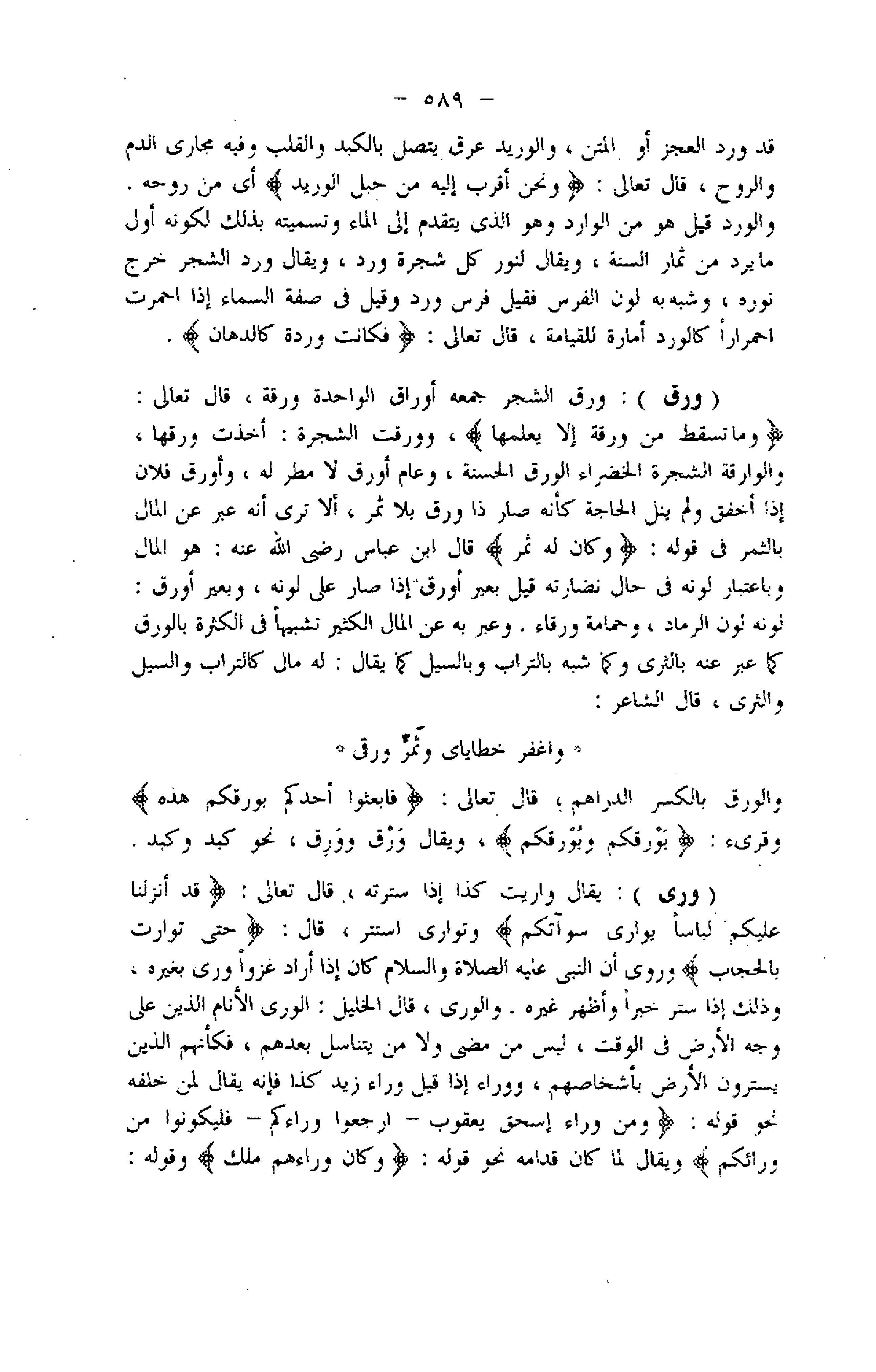 قد ورد العجز أو المتن، والوريد عرق يتصل بالكبد والقلب وفيه مجارى الدم والروح، قال تعالى: وَنَحْنُ أَقْرَبُ إِلَيْهِ مِنْ حَبْلِ الْوَرِيدِ أي من روحه.