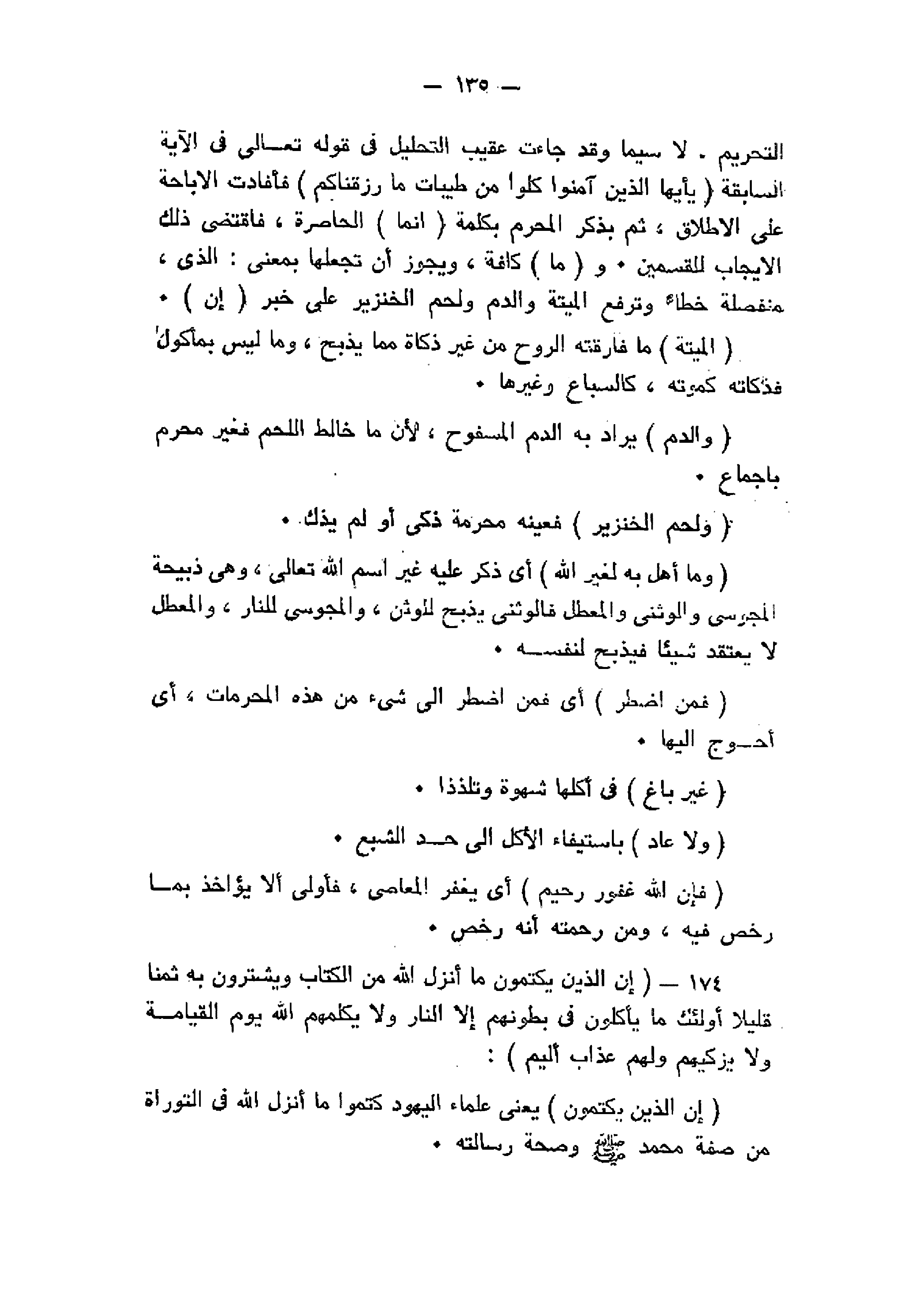 إِنَّ الَّذِينَ يَكْتُمُونَ ما أَنْزَلَ اللَّهُ مِنَ الْكِتابِ وَيَشْتَرُونَ بِهِ ثَمَناً قَلِيلاً أُولئِكَ ما يَأْكُلُونَ فِي بُطُونِهِمْ إِلاَّ النَّارَ وَلا يُكَلِّمُهُمُ اللَّهُ يَوْمَ الْقِيامَةِ وَلا يُزَكِّيهِمْ وَلَهُمْ عَذابٌ أَلِيمٌ (174)