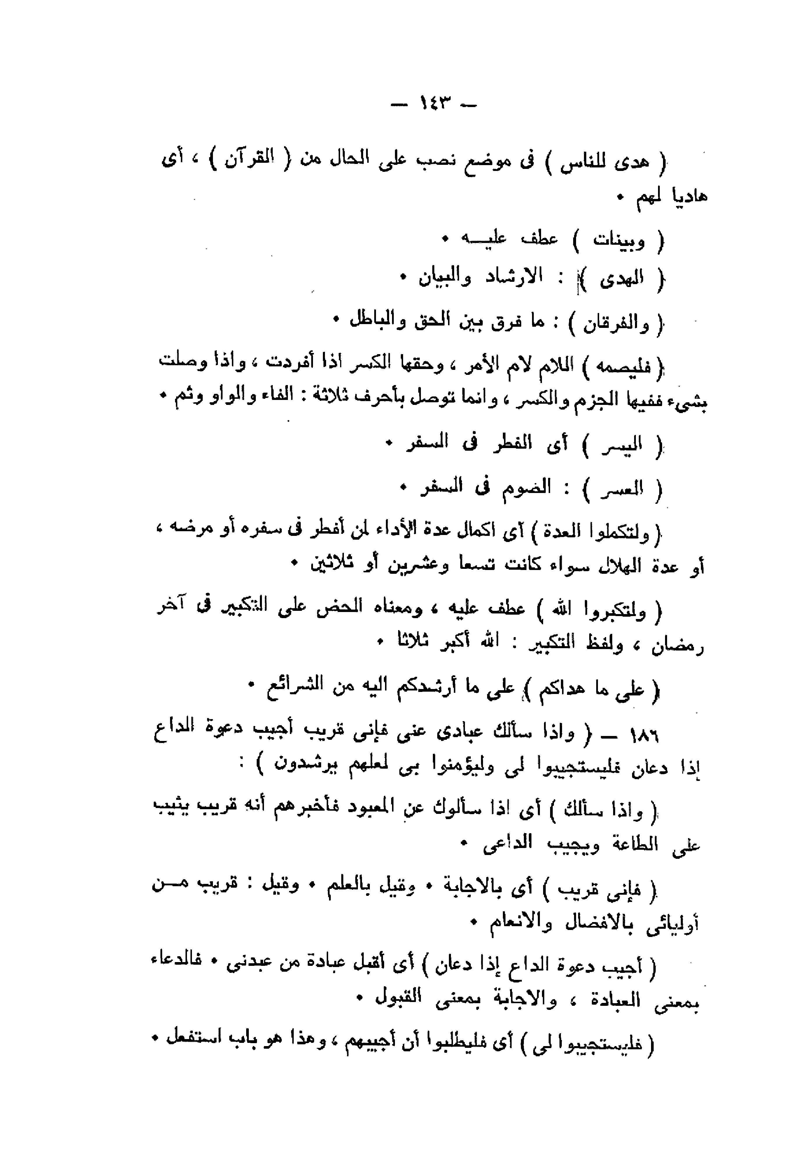 أُجِيبُ دَعْوَةَ الدَّاعِ إِذا دَعانِ أي أقبل عبادة من عبدنى. فالدعاء بمعنى العبادة، والاجابة بمعنى القبول.