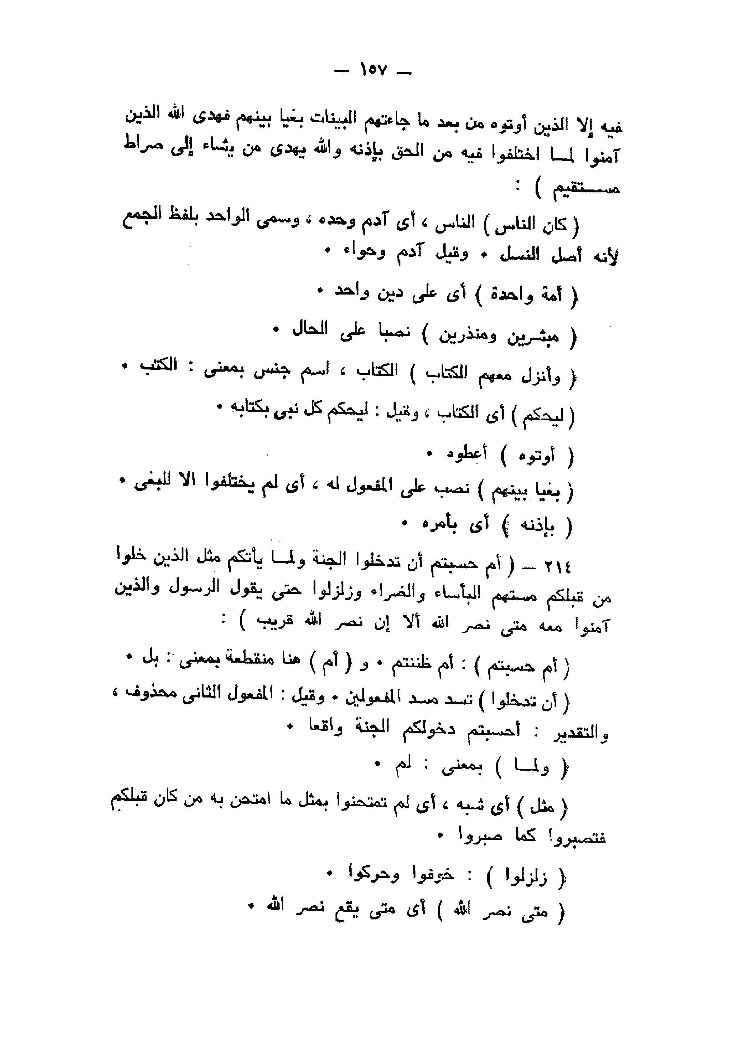 أَمْ حَسِبْتُمْ أَنْ تَدْخُلُوا الْجَنَّةَ وَلَمَّا يَأْتِكُمْ مَثَلُ الَّذِينَ خَلَوْا مِنْ قَبْلِكُمْ مَسَّتْهُمُ الْبَأْساءُ وَالضَّرَّاءُ وَزُلْزِلُوا حَتَّى يَقُولَ الرَّسُولُ وَالَّذِينَ آمَنُوا مَعَهُ مَتى نَصْرُ اللَّهِ أَلا إِنَّ نَصْرَ اللَّهِ قَرِيبٌ (214)