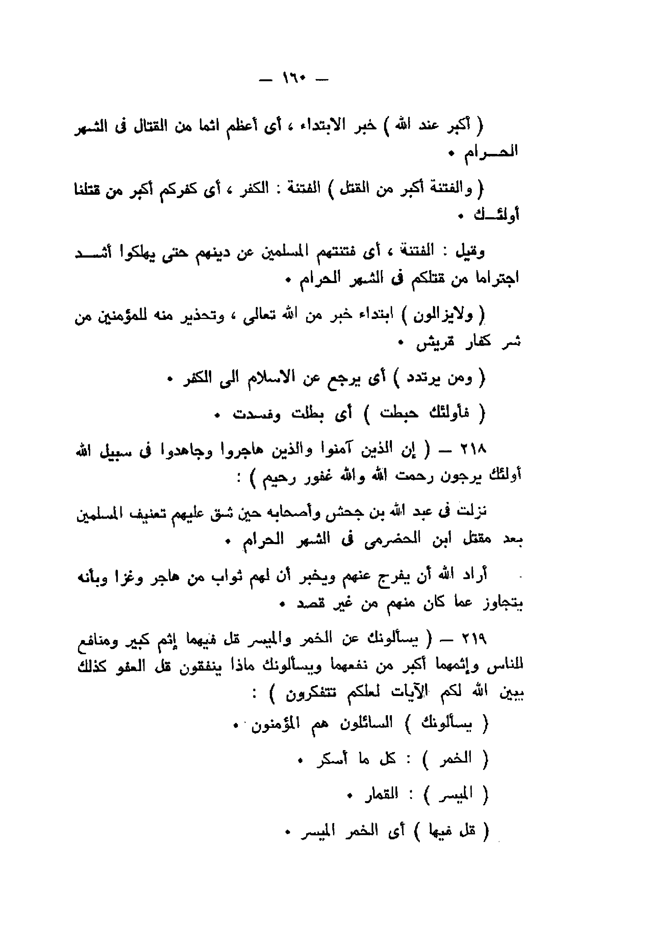 إِنَّ الَّذِينَ آمَنُوا وَالَّذِينَ هاجَرُوا وَجاهَدُوا فِي سَبِيلِ اللَّهِ أُولئِكَ يَرْجُونَ رَحْمَتَ اللَّهِ وَاللَّهُ غَفُورٌ رَحِيمٌ (218) يَسْئَلُونَكَ عَنِ الْخَمْرِ وَالْمَيْسِرِ قُلْ فِيهِما إِثْمٌ كَبِيرٌ وَمَنافِعُ لِلنَّاسِ وَإِثْمُهُما أَكْبَرُ مِنْ نَفْعِهِما وَيَسْئَلُونَكَ ماذا يُنْفِقُونَ قُلِ الْعَفْوَ كَذلِكَ يُبَيِّنُ اللَّهُ لَكُمُ الْآياتِ لَعَلَّكُمْ تَتَفَكَّرُونَ (219)