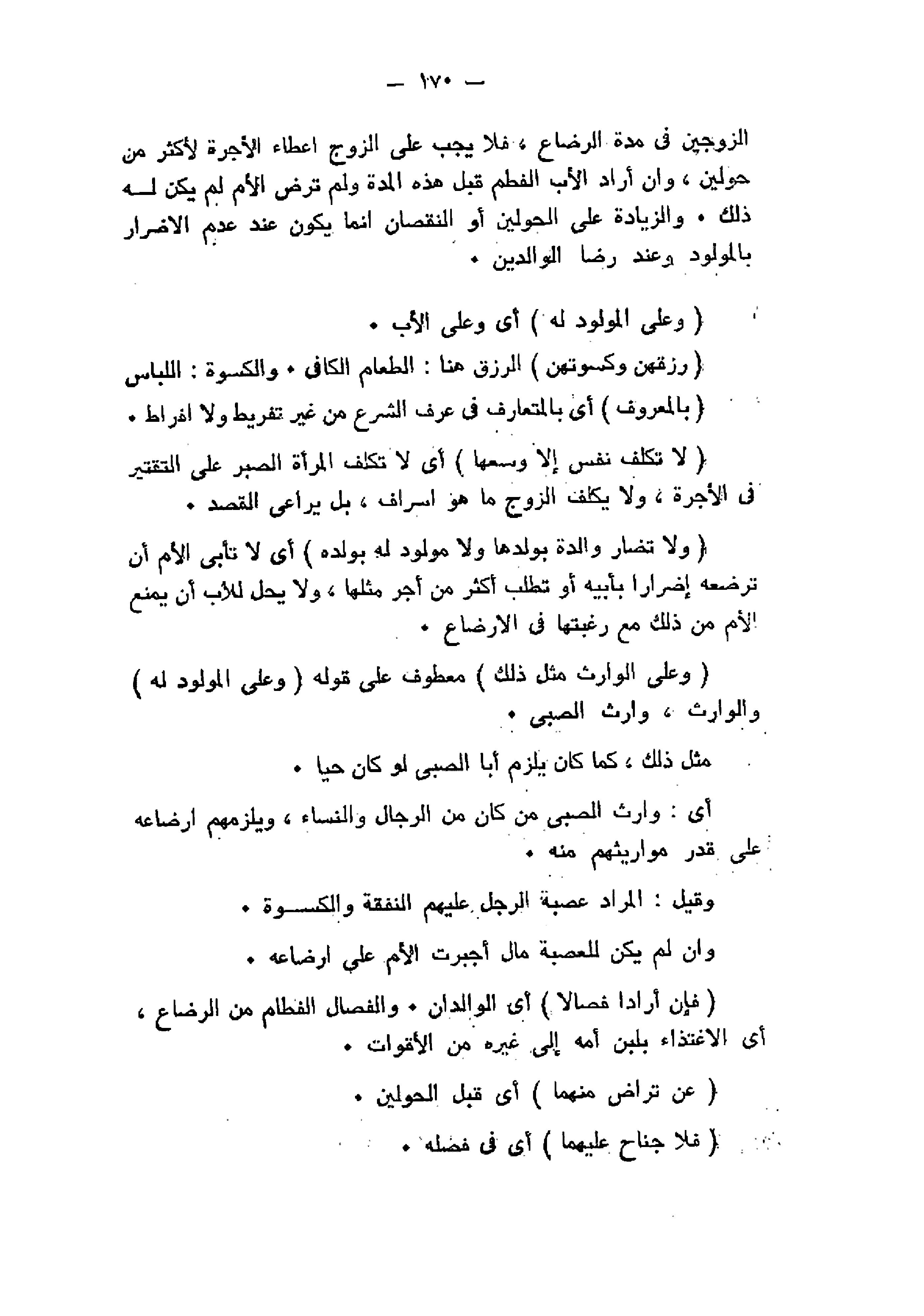 الزوجين فى مدة الرضاع، فلا يجب على الزوج إعطاء الأجرة لأكثر من حولين، وان أراد الأب الفطم قبل هذه المدة ولم ترض الأم لم يكن له ذلك. والزيادة على الحولين أو النقصان انما يكون عند عدم الإضرار بالمولود وعند رضا الوالدين.