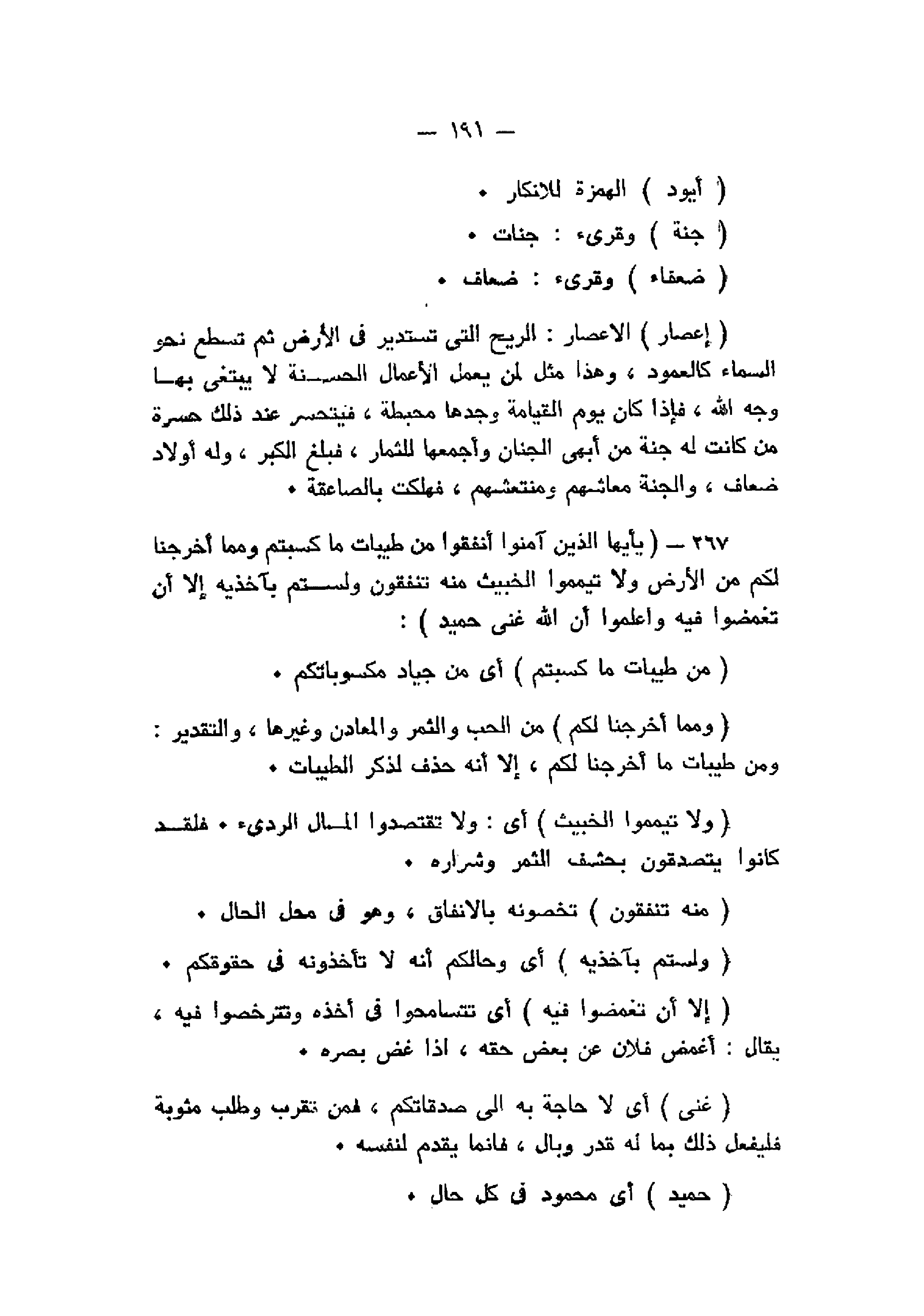 267- يا أَيُّهَا الَّذِينَ آمَنُوا أَنْفِقُوا مِنْ طَيِّباتِ ما كَسَبْتُمْ وَمِمَّا أَخْرَجْنا لَكُمْ مِنَ الْأَرْضِ وَلا تَيَمَّمُوا الْخَبِيثَ مِنْهُ تُنْفِقُونَ وَلَسْتُمْ بِآخِذِيهِ إِلَّا أَنْ تُغْمِضُوا فِيهِ وَاعْلَمُوا أَنَّ اللَّهَ غَنِيٌّ حَمِيدٌ: