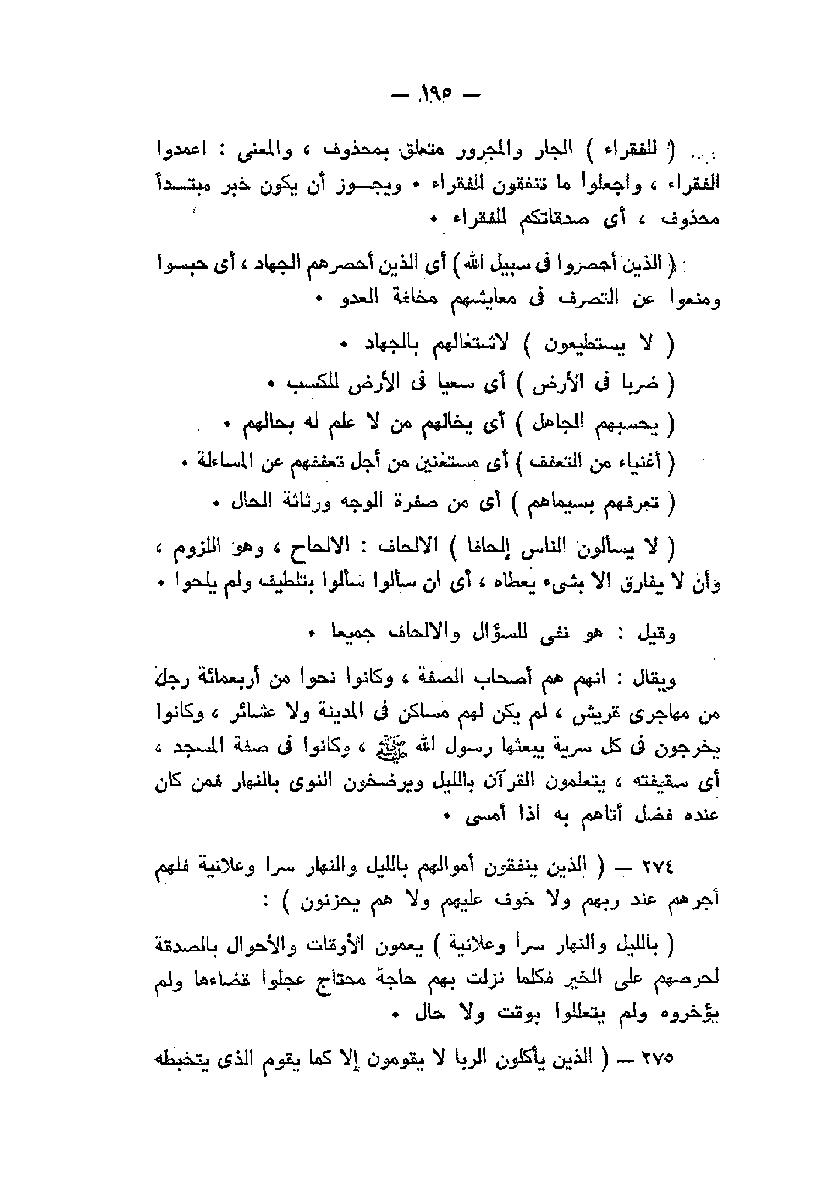 الَّذِينَ أُحْصِرُوا فِي سَبِيلِ اللَّهِ أي الذين أحصرهم الجهاد، أي حبسوا ومنعوا عن التصرف فى معايشهم مخافة العدو.