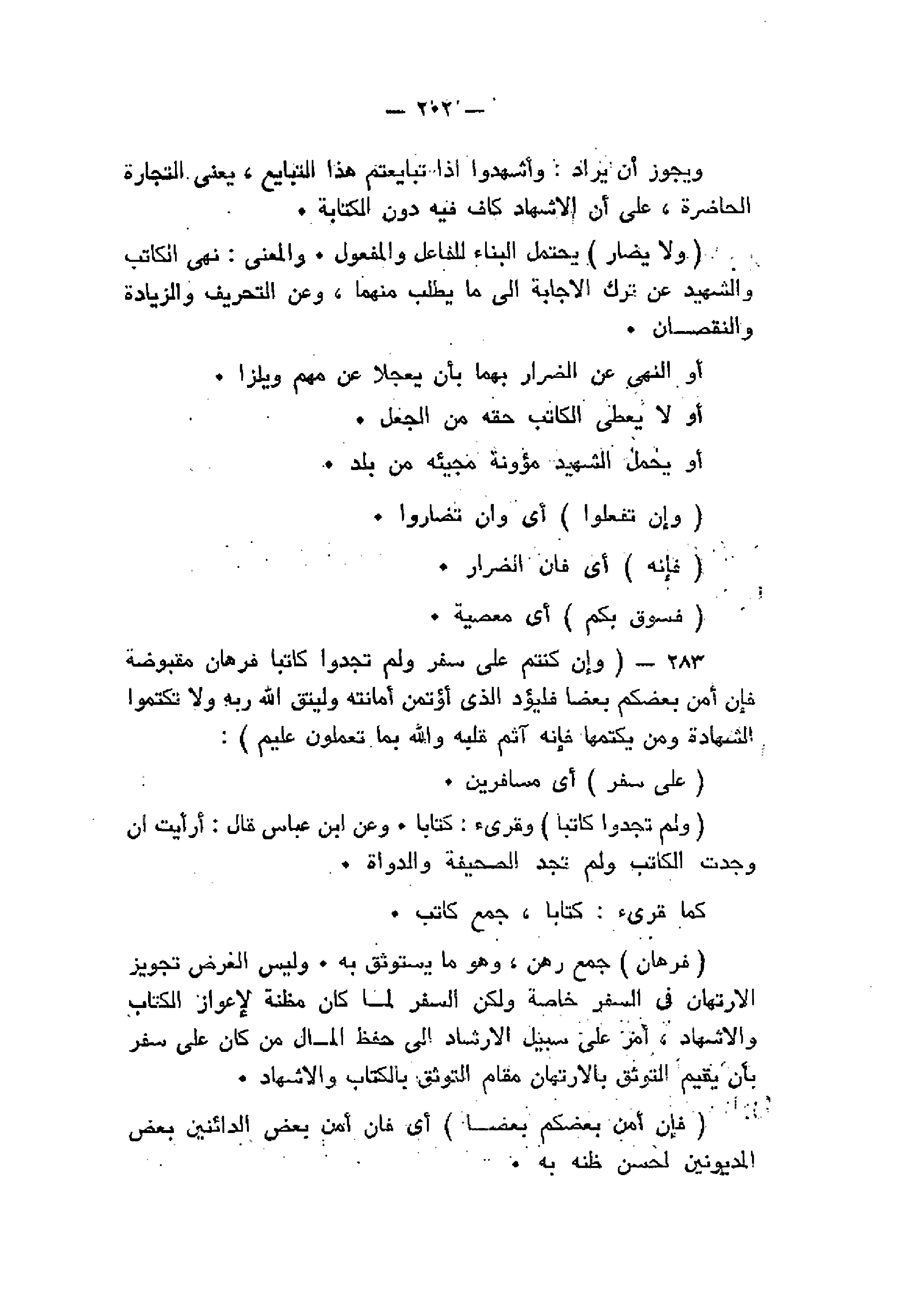 283- وَإِنْ كُنْتُمْ عَلى سَفَرٍ وَلَمْ تَجِدُوا كاتِباً فَرِهانٌ مَقْبُوضَةٌ فَإِنْ أَمِنَ بَعْضُكُمْ بَعْضاً فَلْيُؤَدِّ الَّذِي اؤْتُمِنَ أَمانَتَهُ وَلْيَتَّقِ اللَّهَ رَبَّهُ وَلا تَكْتُمُوا الشَّهادَةَ وَمَنْ يَكْتُمْها فَإِنَّهُ آثِمٌ قَلْبُهُ وَاللَّهُ بِما تَعْمَلُونَ عَلِيمٌ: