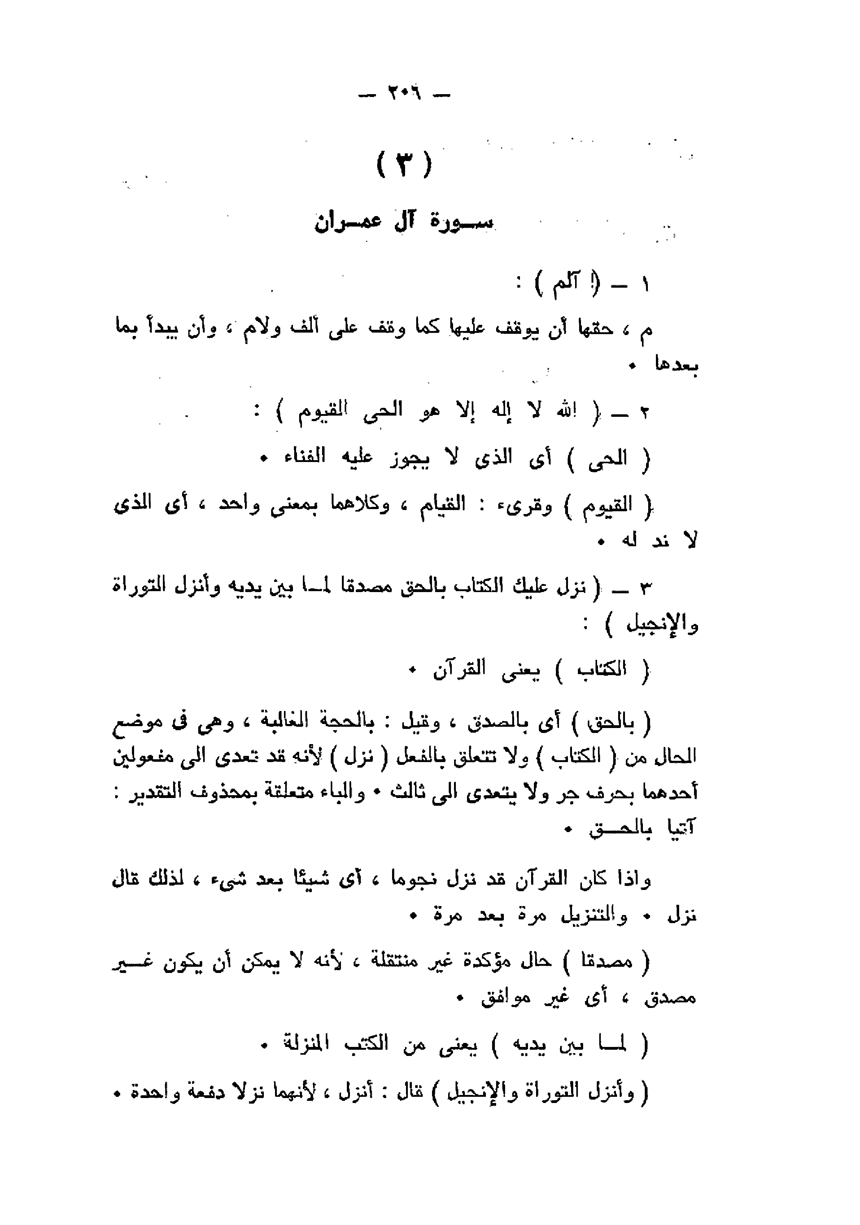 الم (1) اللَّهُ لا إِلهَ إِلاَّ هُوَ الْحَيُّ الْقَيُّومُ (2) نَزَّلَ عَلَيْكَ الْكِتابَ بِالْحَقِّ مُصَدِّقاً لِما بَيْنَ يَدَيْهِ وَأَنْزَلَ التَّوْراةَ وَالْإِنْجِيلَ (3)