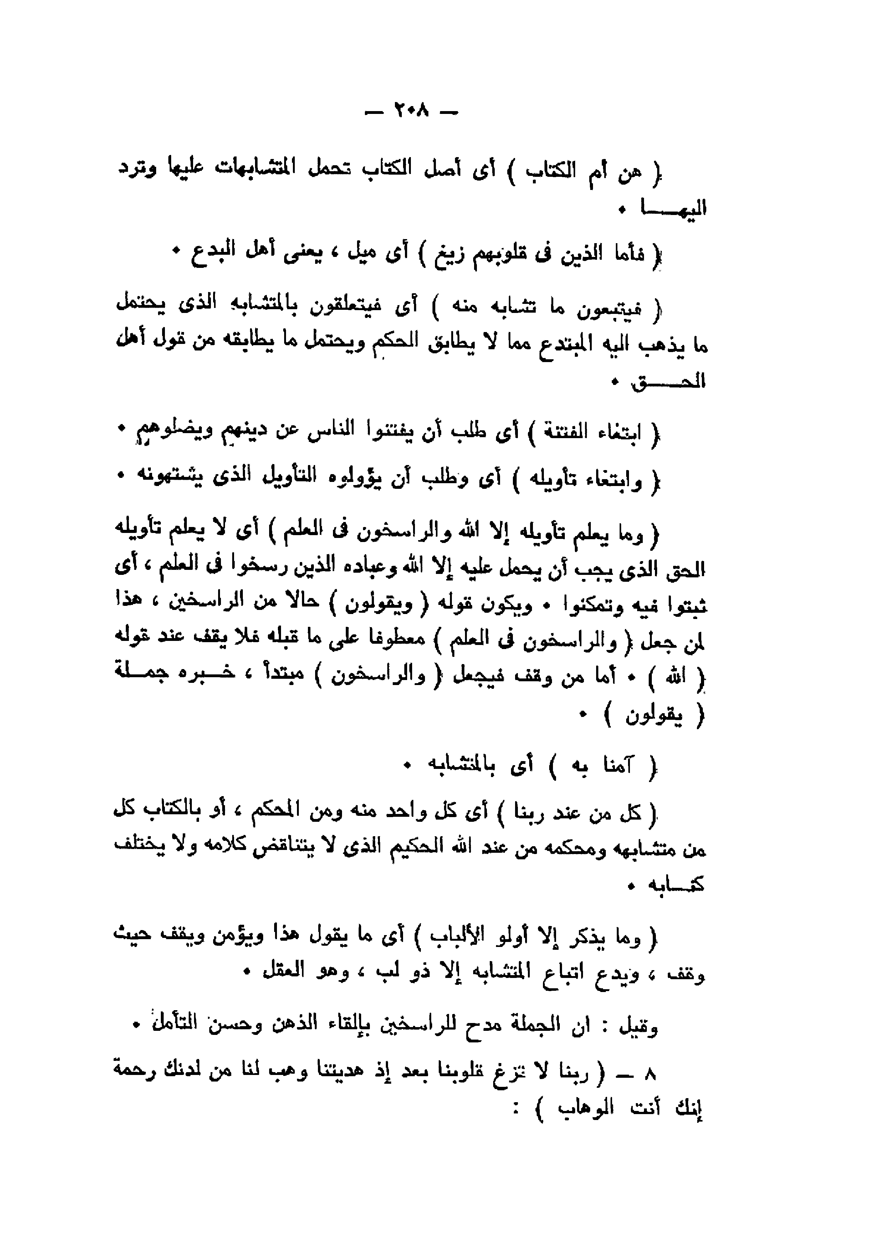 فَيَتَّبِعُونَ ما تَشابَهَ مِنْهُ أي فيتعلقون بالمتشابه الذي يحتمل ما يذهب اليه المبتدع مما لا يطابق الحكم ويحتمل ما يطابقه من قول أهل الحق.