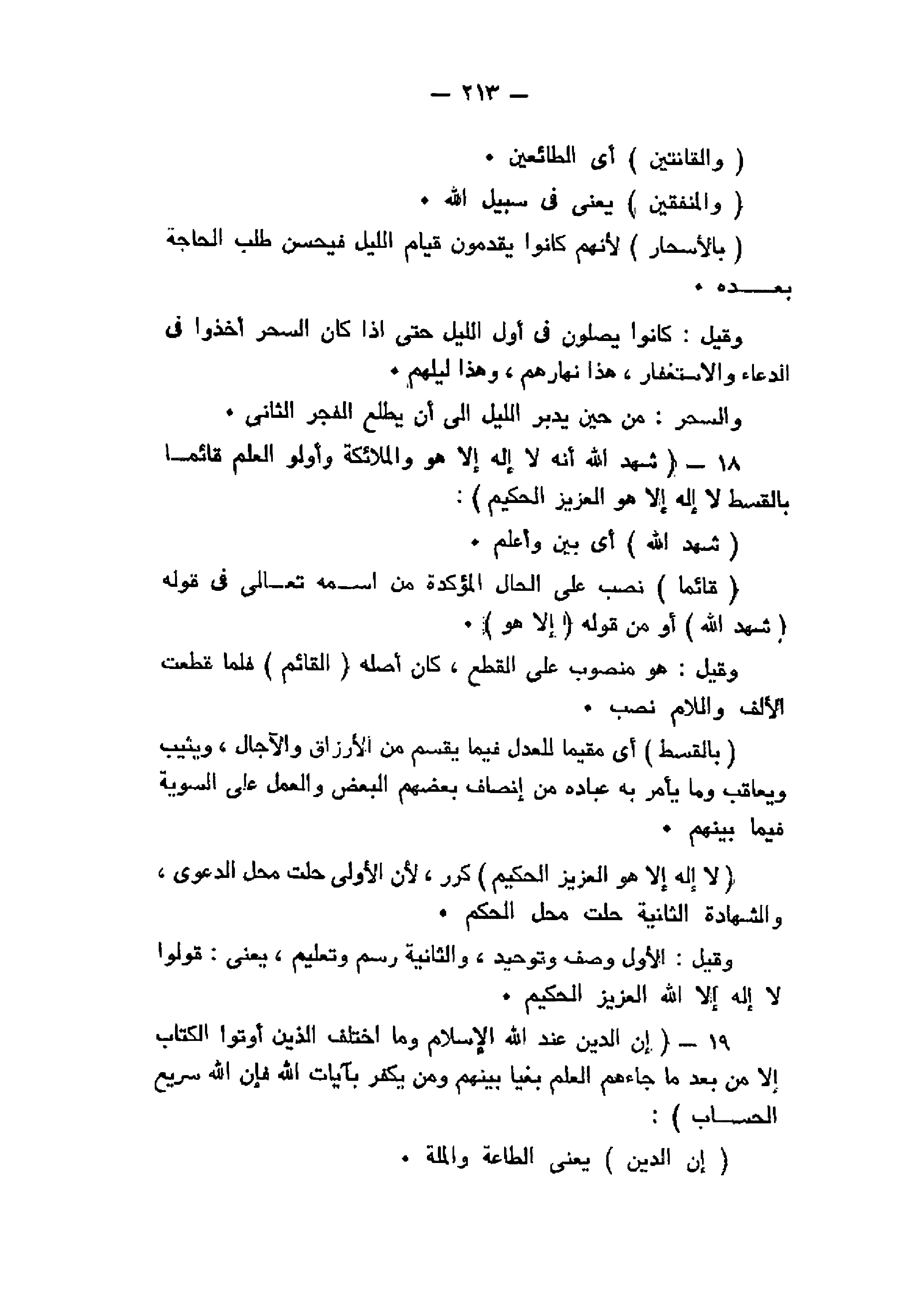 شَهِدَ اللَّهُ أَنَّهُ لا إِلهَ إِلاَّ هُوَ وَالْمَلائِكَةُ وَأُولُوا الْعِلْمِ قائِماً بِالْقِسْطِ لا إِلهَ إِلاَّ هُوَ الْعَزِيزُ الْحَكِيمُ (18) إِنَّ الدِّينَ عِنْدَ اللَّهِ الْإِسْلامُ وَمَا اخْتَلَفَ الَّذِينَ أُوتُوا الْكِتابَ إِلاَّ مِنْ بَعْدِ ما جاءَهُمُ الْعِلْمُ بَغْياً بَيْنَهُمْ وَمَنْ يَكْفُرْ بِآياتِ اللَّهِ فَإِنَّ اللَّهَ سَرِيعُ الْحِسابِ (19)