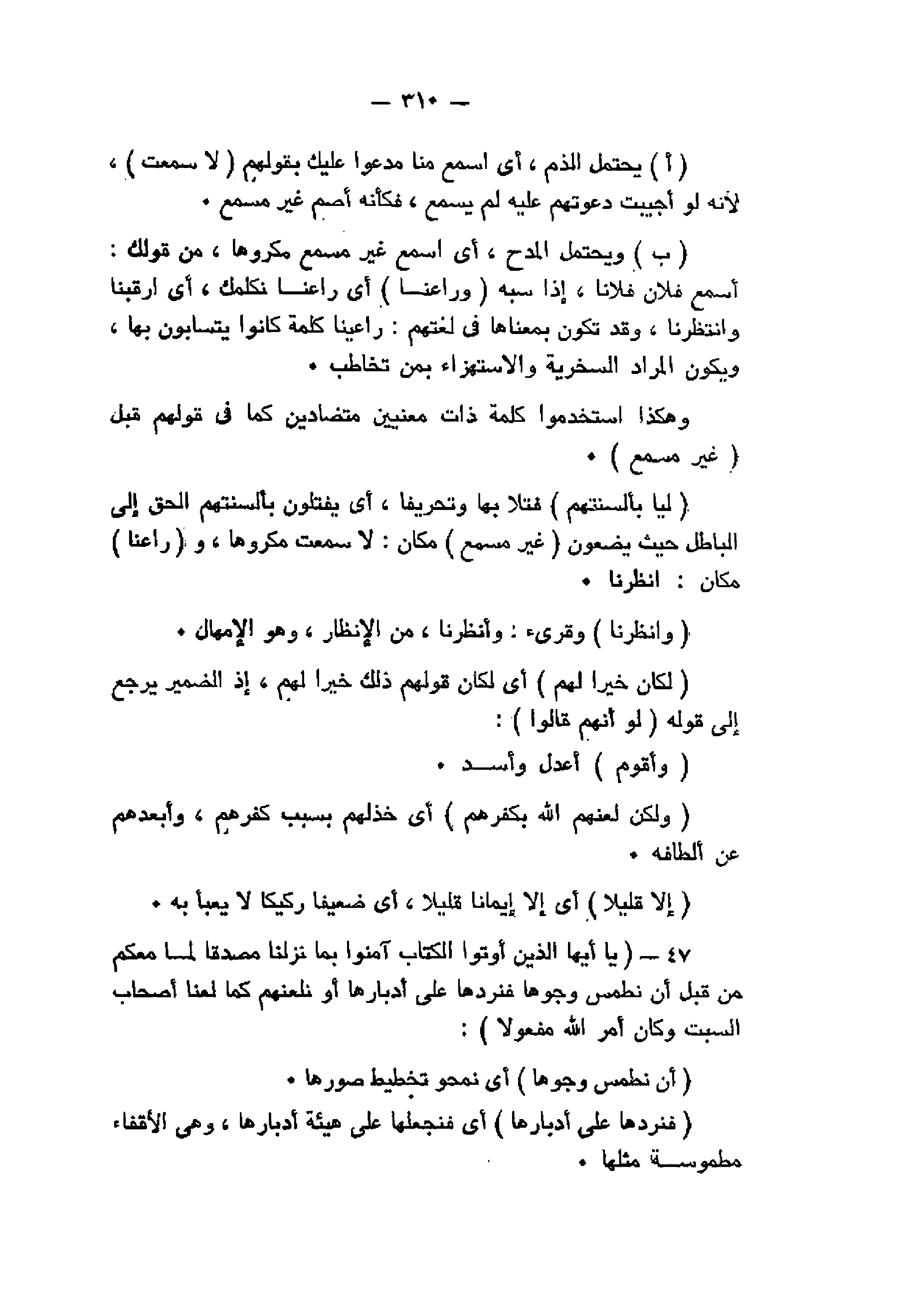 (أ) يحتمل الذم، أي اسمع منا مدعوا عليك بقولهم (لا سمعت) ، لأنه لو أجيبت دعوتهم عليه لم يسمع، فكأنه أصم غير مسمع.