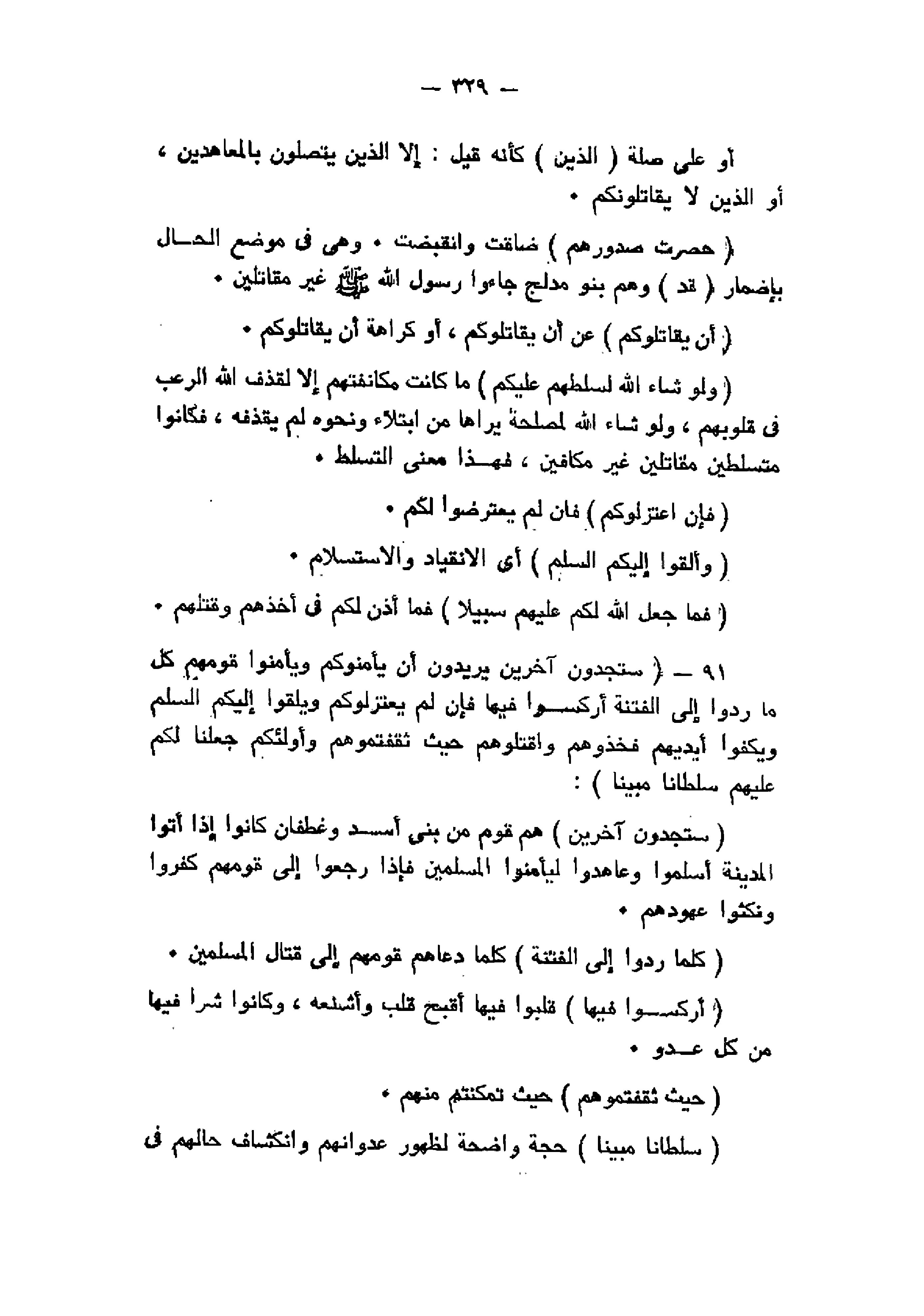 91- سَتَجِدُونَ آخَرِينَ يُرِيدُونَ أَنْ يَأْمَنُوكُمْ وَيَأْمَنُوا قَوْمَهُمْ كُلَّما رُدُّوا إِلَى الْفِتْنَةِ أُرْكِسُوا فِيها فَإِنْ لَمْ يَعْتَزِلُوكُمْ وَيُلْقُوا إِلَيْكُمُ السَّلَمَ وَيَكُفُّوا أَيْدِيَهُمْ فَخُذُوهُمْ وَاقْتُلُوهُمْ حَيْثُ ثَقِفْتُمُوهُمْ وَأُولئِكُمْ جَعَلْنا لَكُمْ عَلَيْهِمْ سُلْطاناً مُبِيناً: