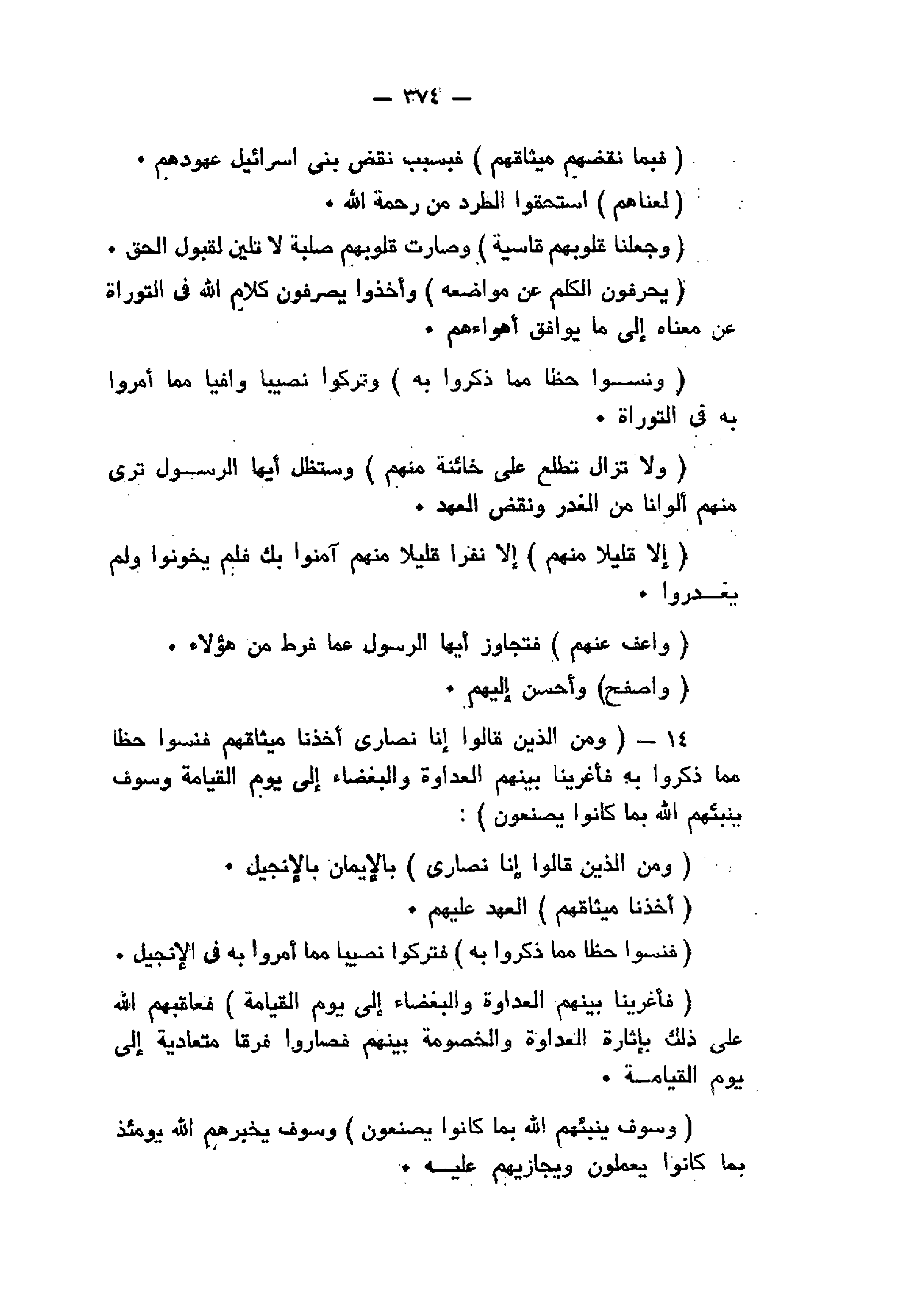 وَمِنَ الَّذِينَ قالُوا إِنَّا نَصارى أَخَذْنا مِيثاقَهُمْ فَنَسُوا حَظًّا مِمَّا ذُكِّرُوا بِهِ فَأَغْرَيْنا بَيْنَهُمُ الْعَداوَةَ وَالْبَغْضاءَ إِلى يَوْمِ الْقِيامَةِ وَسَوْفَ يُنَبِّئُهُمُ اللَّهُ بِما كانُوا يَصْنَعُونَ (14)