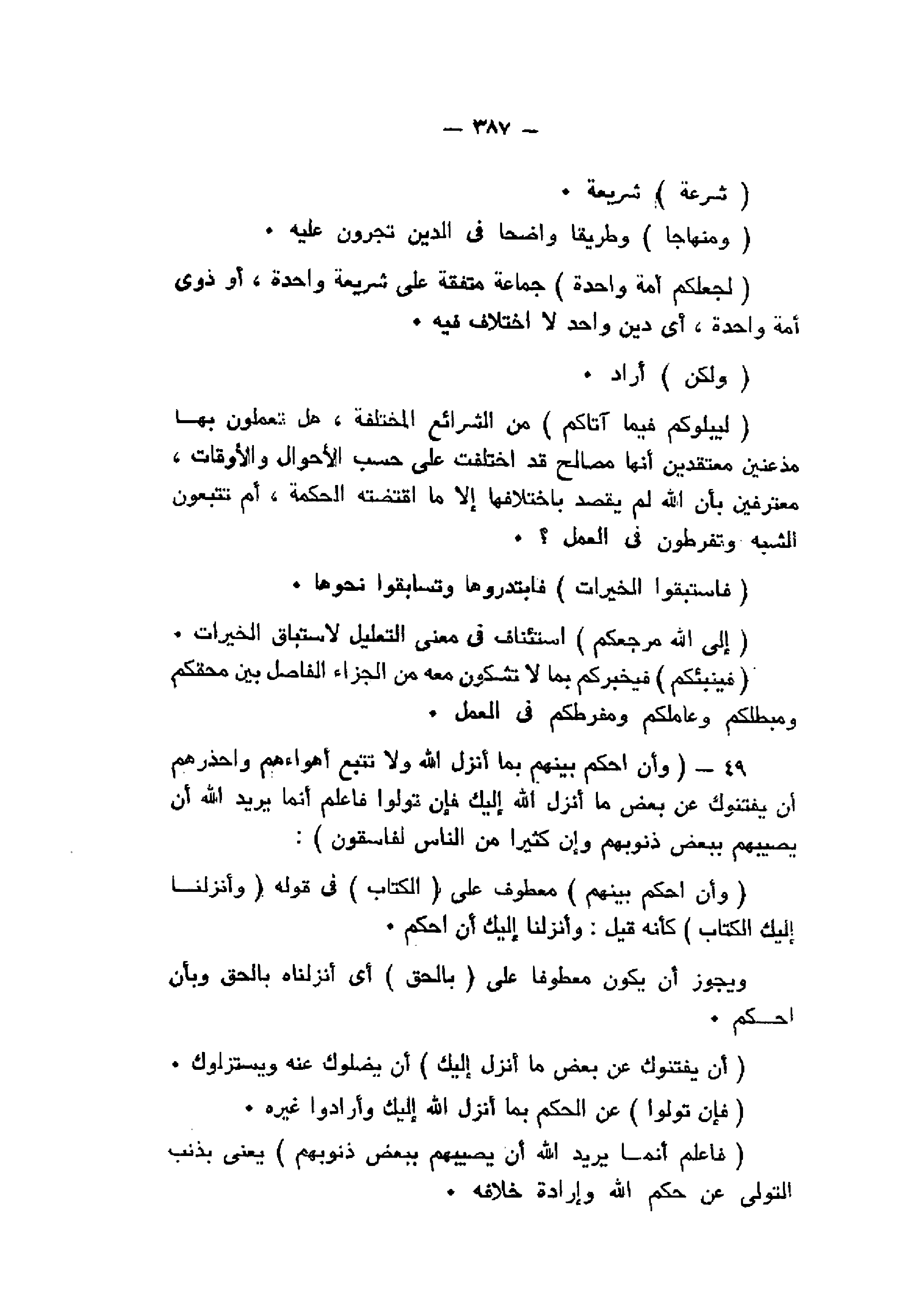 49- وَأَنِ احْكُمْ بَيْنَهُمْ بِما أَنْزَلَ اللَّهُ وَلا تَتَّبِعْ أَهْواءَهُمْ وَاحْذَرْهُمْ أَنْ يَفْتِنُوكَ عَنْ بَعْضِ ما أَنْزَلَ اللَّهُ إِلَيْكَ فَإِنْ تَوَلَّوْا فَاعْلَمْ أَنَّما يُرِيدُ اللَّهُ أَنْ يُصِيبَهُمْ بِبَعْضِ ذُنُوبِهِمْ وَإِنَّ كَثِيراً مِنَ النَّاسِ لَفاسِقُونَ: